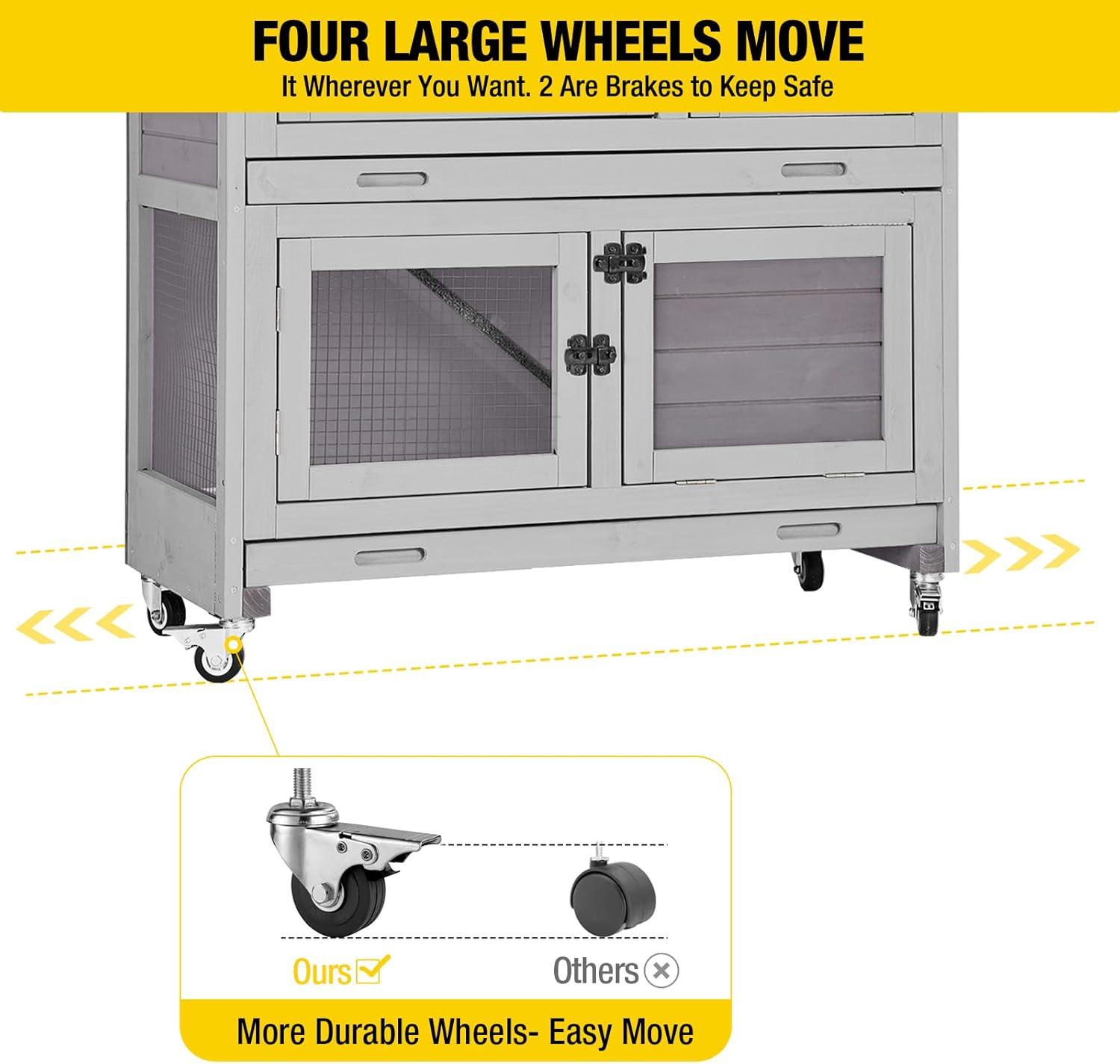 • Easy Movement: Four stronger metal wheels to easily move the rabbit hutch and quickly. Two are brakes to fix well and keep safe
