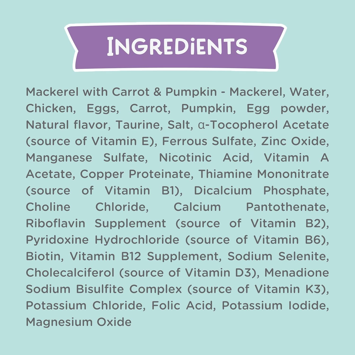 • GRAIN FREE & NON-GMO: Our pate mackerel, carrot, & pumpkin is prepared without any grains, artificial additives, or by-products, as our goal is to feed cats the way nature intended. We always source wholesome ingredients to promote optimal health and nutrition.