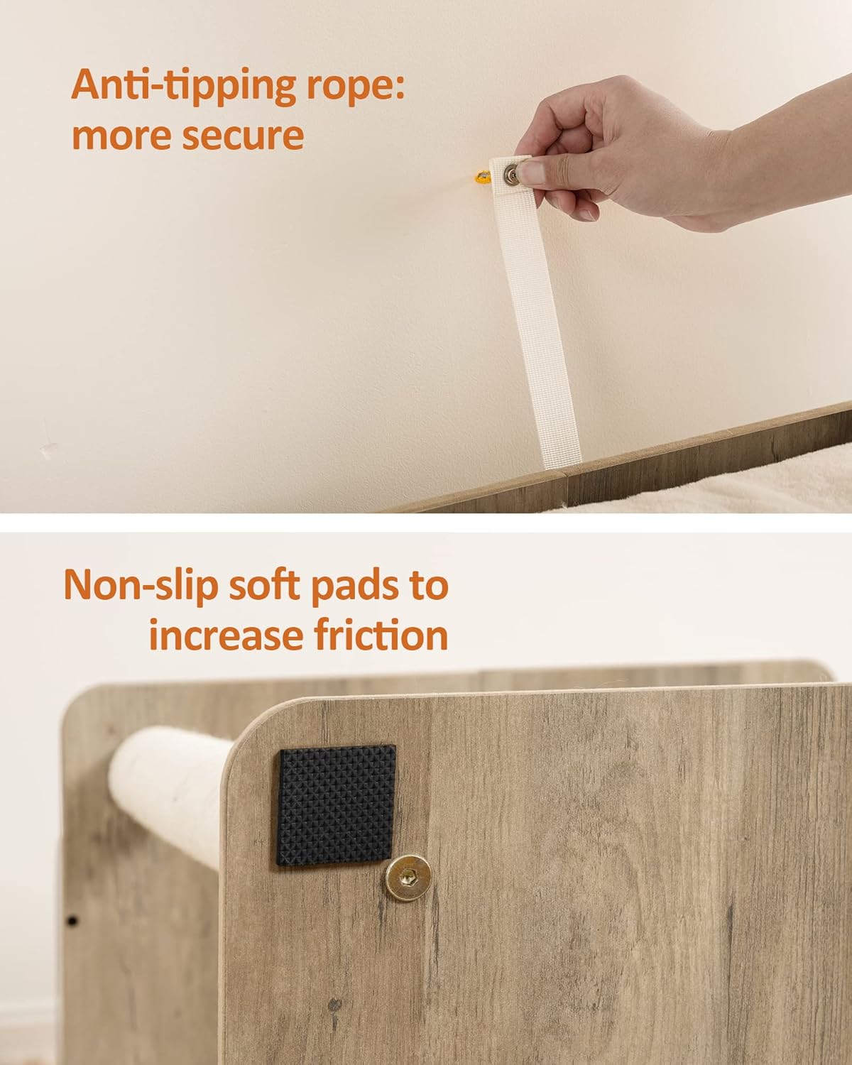 • Sturdy, stable and safe: with smooth veneer particle board for durability, an oversized base with non-slip mats, pure metal components and anti-tip kits, and then a selection of the most stable triangular structures, this cat scratching tree provides a safe habitat for your cats