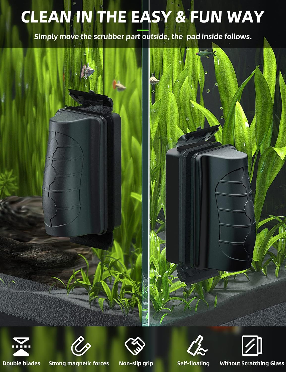 • Easy and fun way to clean the inside of the aquariums from the outside