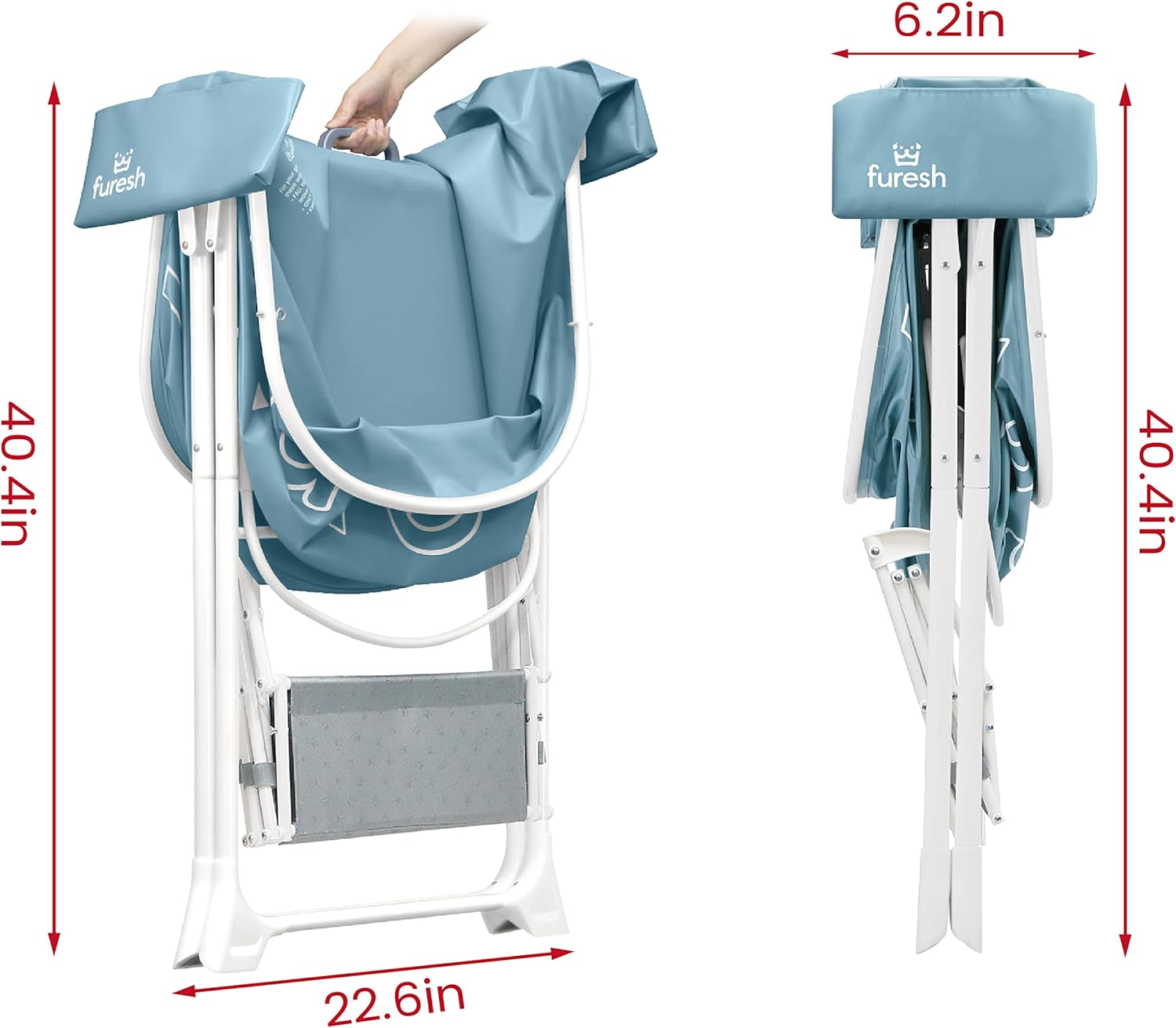- 【LIGHTWEIGHT&DURABLE DESIGN】The basin is made of marine grade PVC, which is rugged, easy-to-clean,and resistant to wear from paws and claws. The frame adopts stainless aluminum tubing. The bathtub is 17 lbs total, yet supports 120 lbs. The steady feet keep safety during bathing and grooming. Dimensions: 63"L x 22.6"W x 33"H(unfolded); 6.2"L x 22.6"W x 40.4"H(folded); 2-year manufacturer warranty