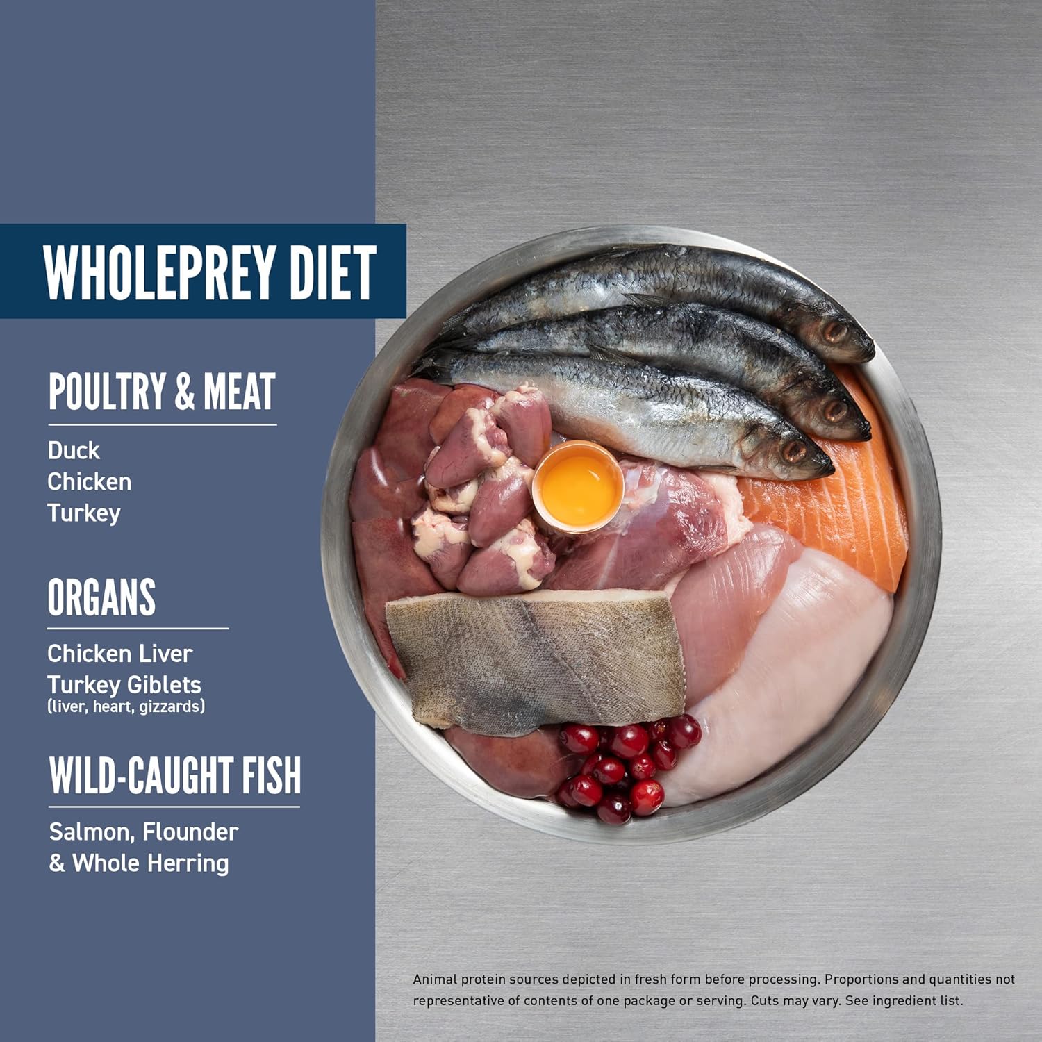 • Grain free dry cat food containing up to 90 percent** premium animal ingredients, including WholePrey ingredients like bones and organs to mimic what your cat's ancestors consumed in the wild