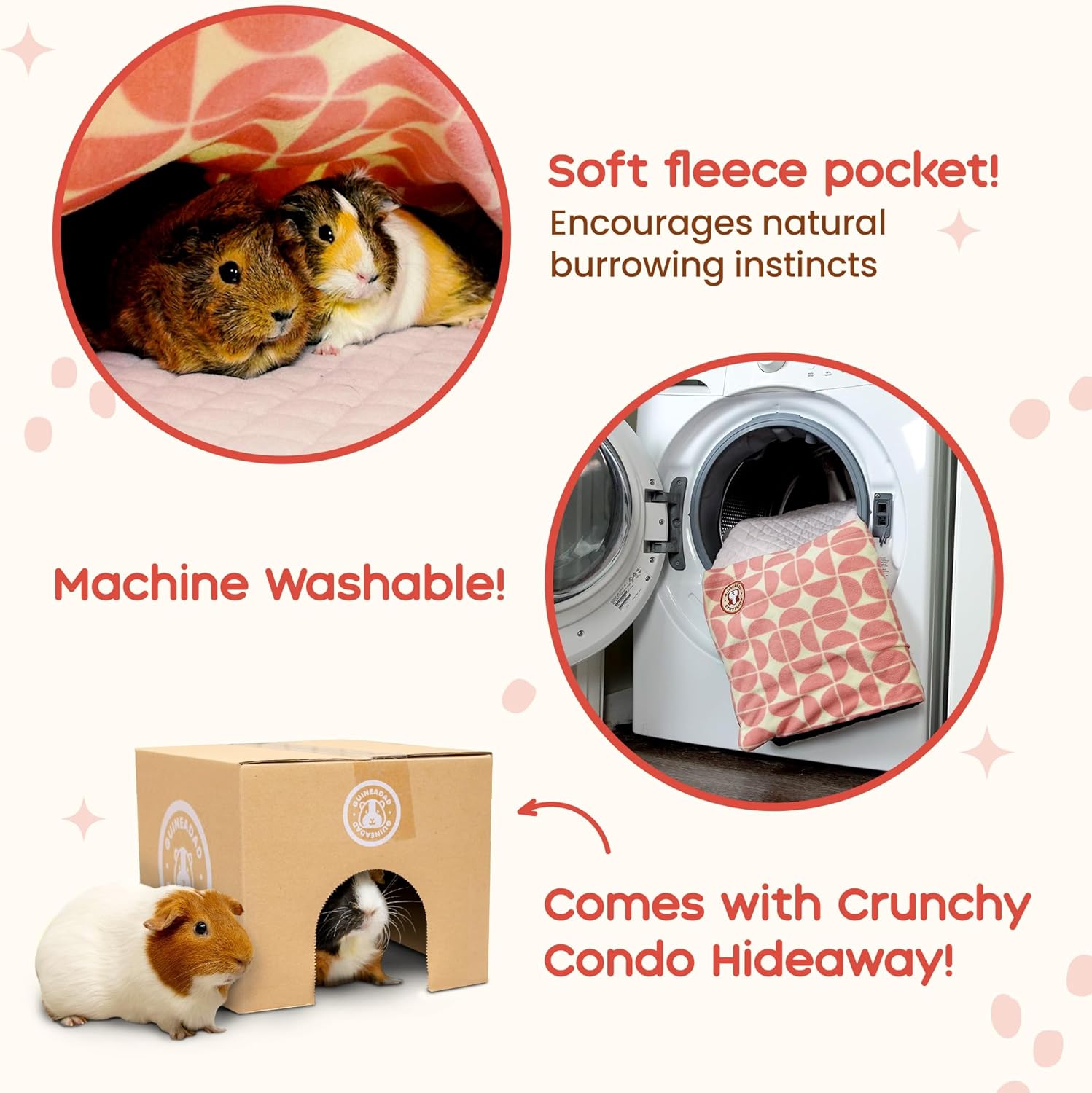 • Encourages Burrowing & Easy Cleaning: With built-in pockets for natural nesting, this guinea pig liner supports instinctive behaviors while maintaining a soft, dry surface. Machine washable for quick cleanup and a healthier guinea pig home.