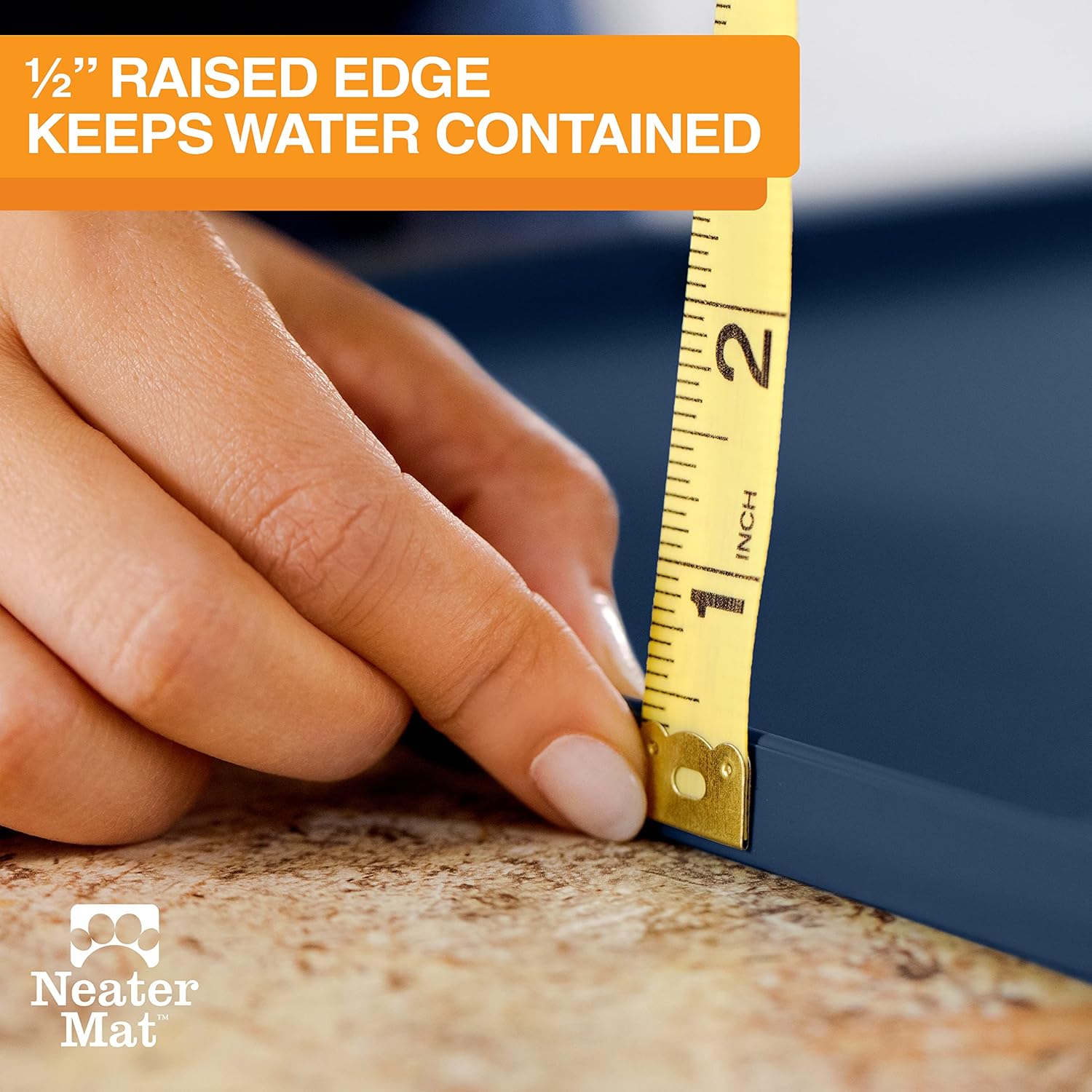Neater Pet Brands Neater Mat Pet Mats for Food and Water, Cat & Dog Bowl Mat Waterproof Silicone, Feeding Tray, Dog Food Mats for Floors, Placemat w/Raised Edge for Under Bowls, 24" x 16", Dark Blue
