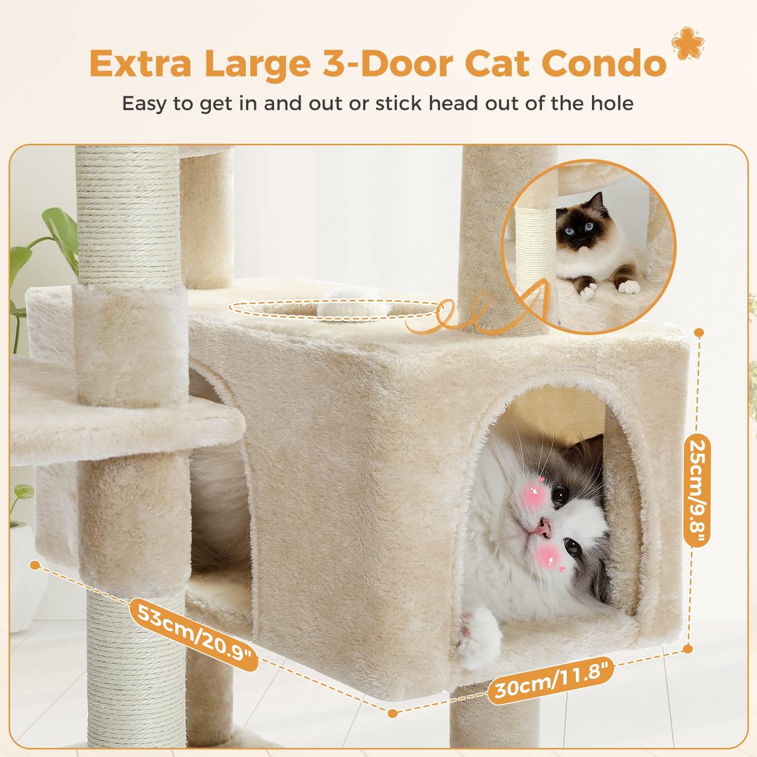 • 72" Tall, Endless Climbing Fun: With the total height of 72" in 8-level structure, the super large cat tree is perfect for 4-5 big cats who love climbing up and down together. The needs of scratching, climbing, sleeping and exercising can also be fully satisfied! Especially the unique rectangle super large cat condo and wide hammock are much larger than normal ones and perfect for cats resting together.