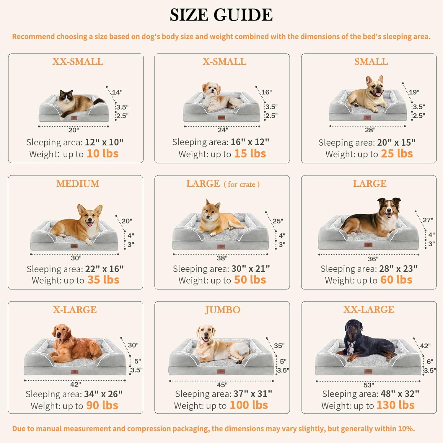 Comfort Expression Large Dog Beds Orthopedic Foam, Waterproof Dog Beds for Dogs Sofa Comfy Pet Bed with Washable Removable Cover & Non-Slip Bottom(Large,Grey White)