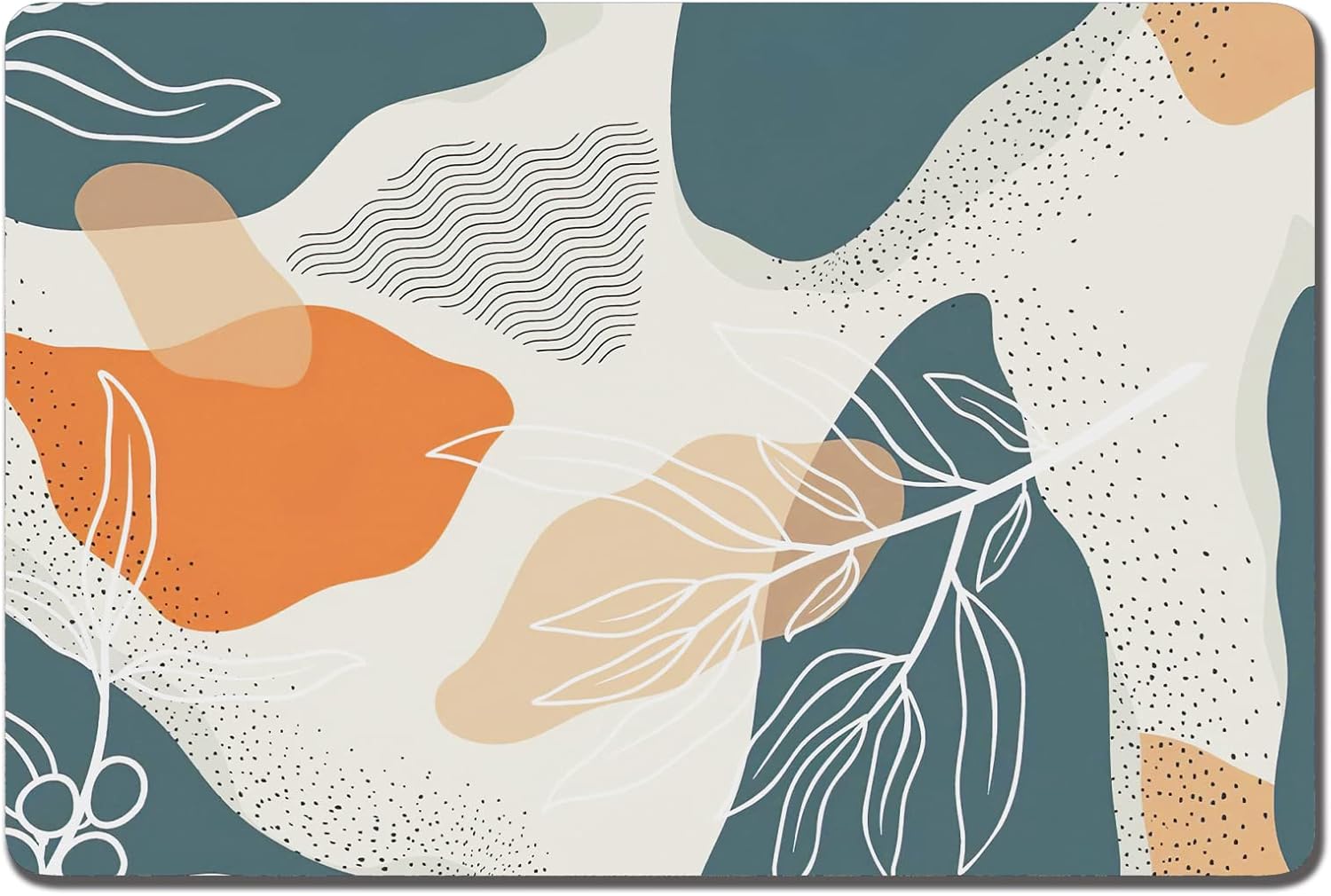 Rnivvi Dog Food Mat, 12" x 19" Boho Absorbent Dog Cat Bowl Mat for Food and Water, Cute Anti-Slip Rubber Pet Feeding Rug Protect Floors, Puppy Placemat for Feeding & Watering Supplies, Abstract Leaves