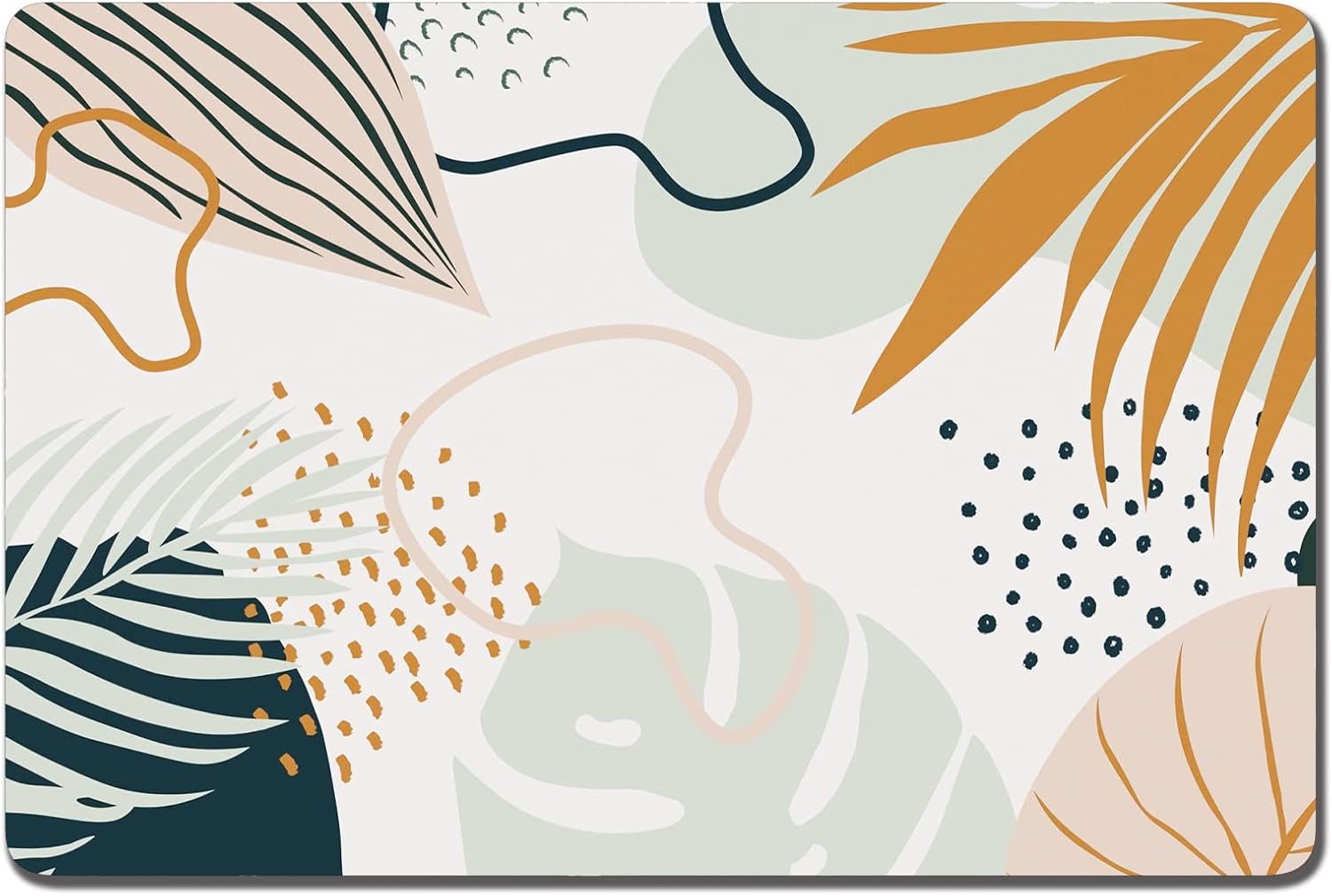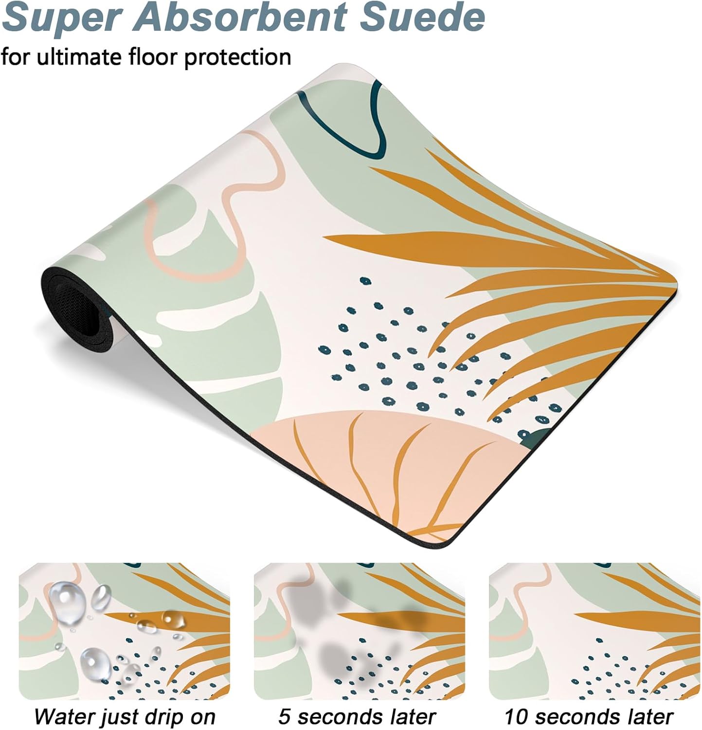 Rnivvi Dog Food Mat, 16" x 24" Boho Absorbent Dog Cat Bowl Mat for Food and Water, Cute Anti-Slip Rubber Pet Feeding Rug Protect Floors, Puppy Placemat for Feeding & Watering Supplies, Tropical Leaves