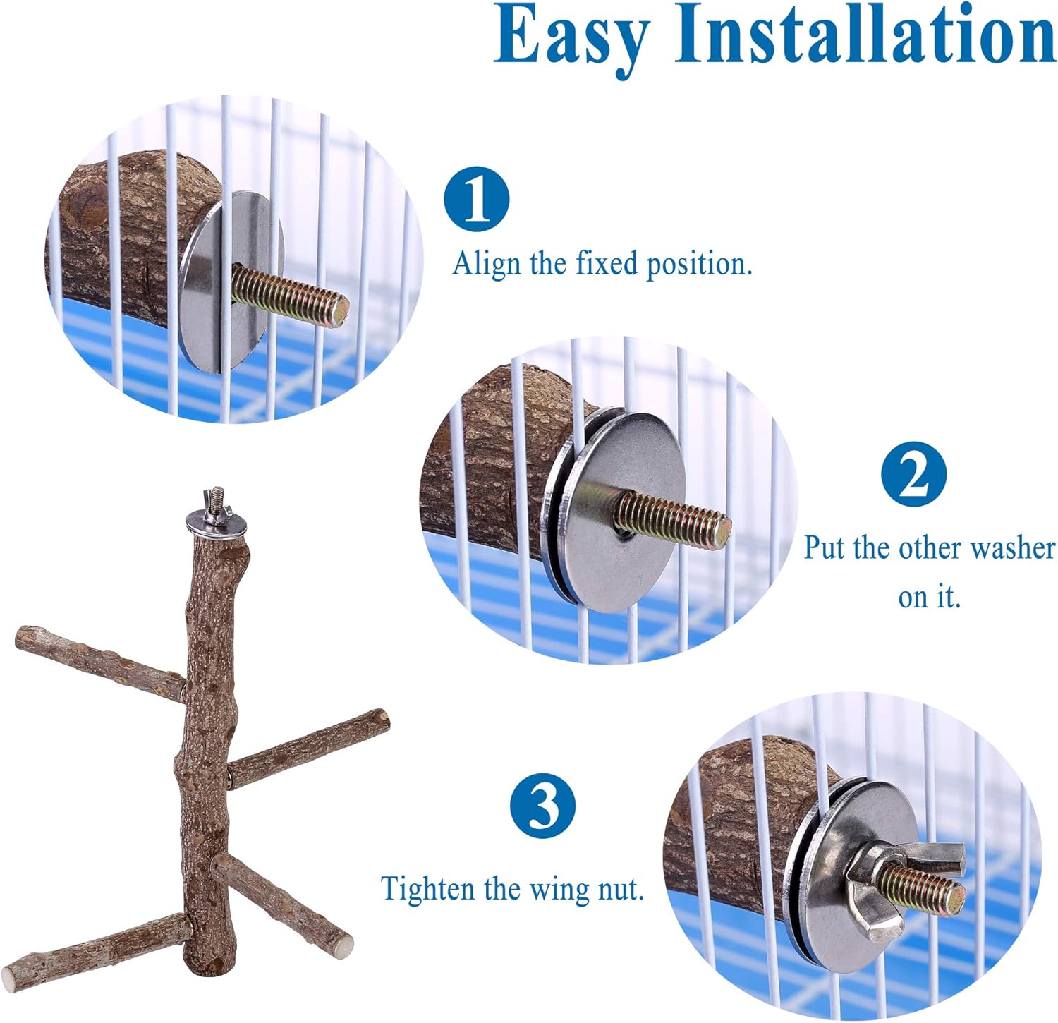 • 【Easy Installation】: The parrot perches are suitable for all bird cages. Each bird perch is equipped with built-in bolt and wing nut, super easy to install and dismantle. Once intalled it will not fall off from the cage, safe for birds to rest or play on.