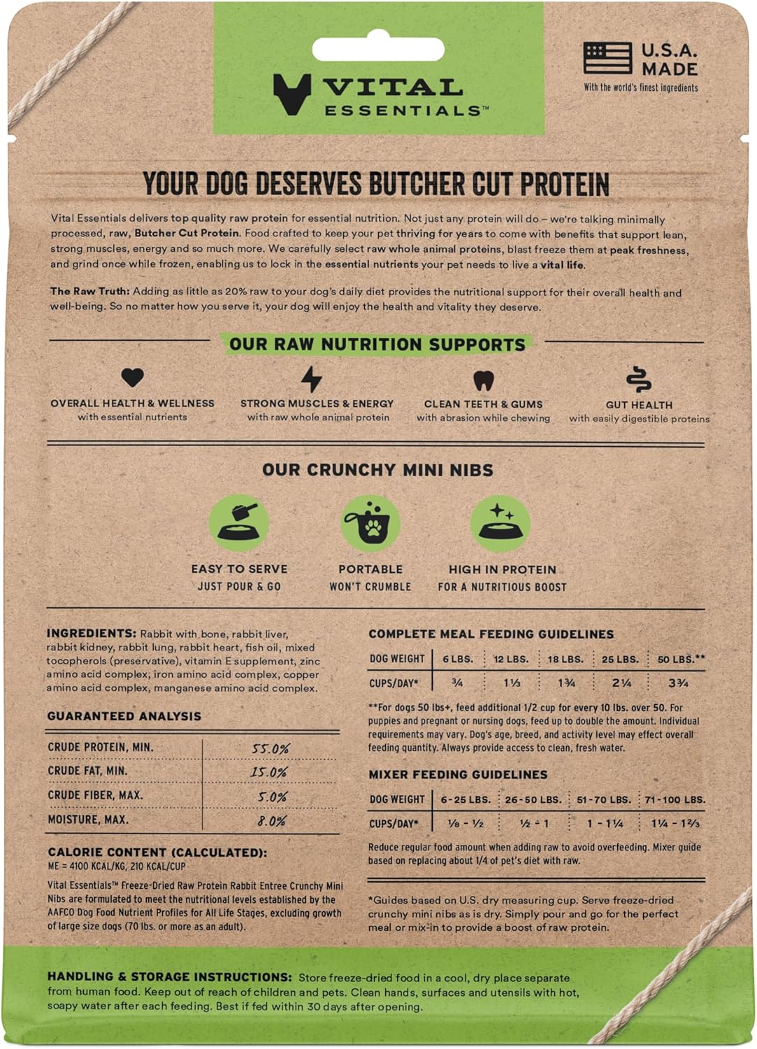 • CRUNCHY FREEZE-DRIED RAW RABBIT DOG FOOD: Vital Essentials Crunchy Freeze Dried Dog Food packs more protein than industry standard into every bite to deliver the peak vitality your dog deserves, especially when compared to dehydrated dog food. This complete and balanced freeze-dried raw dog food is made with premium butcher cut rabbit, responsibly sourced in the EU.