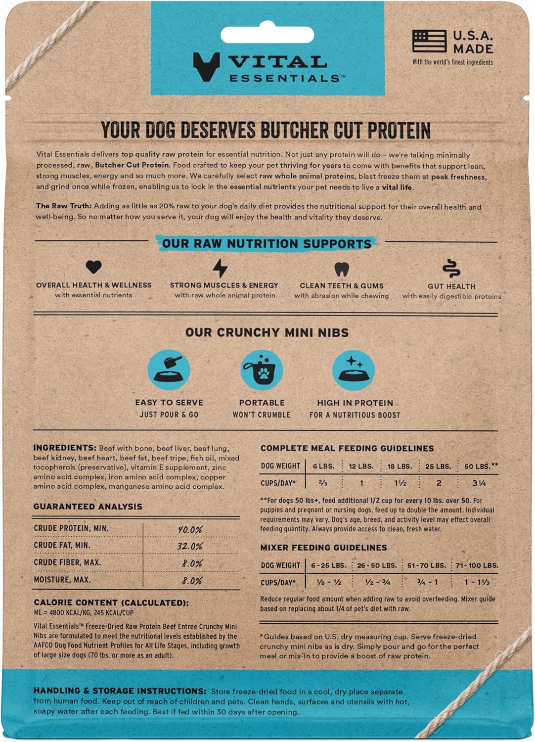 Vital Essentials Freeze-Dried Raw Beef Meal or Mixer Dog Food Crunchy Mini Nibs, 5.5 oz