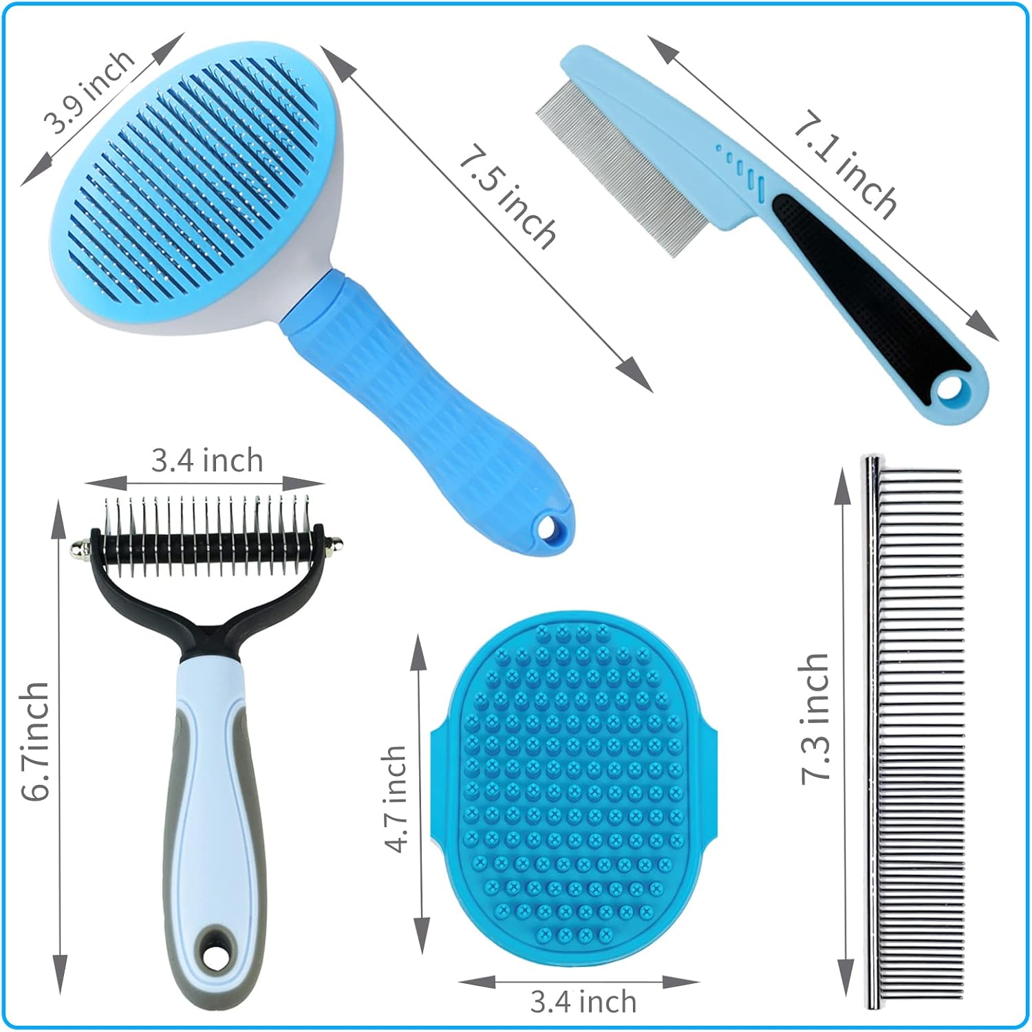• 【FULL SET DOG/CAT BRUSH】 This full set of dog/cat grooming brushes includes every tool you need to fulfil daily care for pet hair removing, it should be a must for all the pets family, especially when the new puppy member joining! The kit is designed in blue sky style, making it to be a great present choice for you!