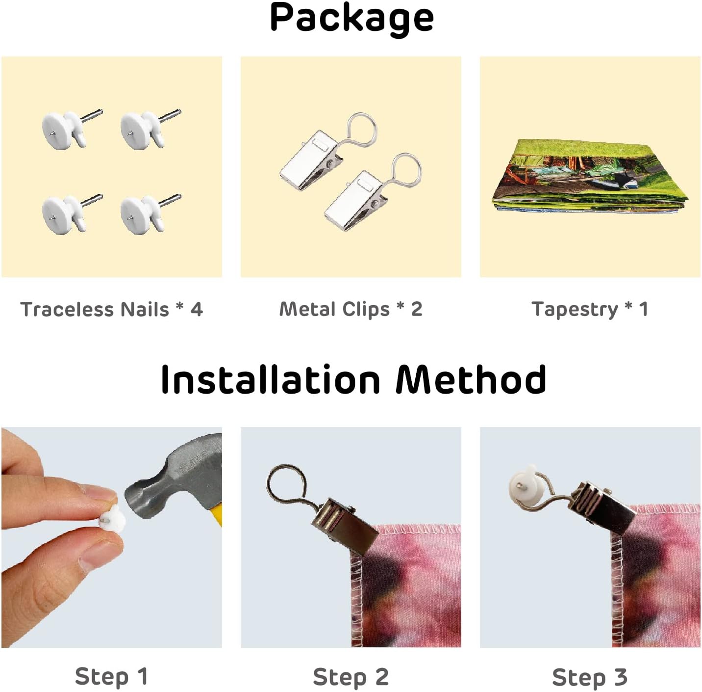 • Use & Care:This tapestry is lightweight and can be easily secured with thumbtacks. Hand and machine washable, and for shipping creases can be removed with a dryer or garment steamer.