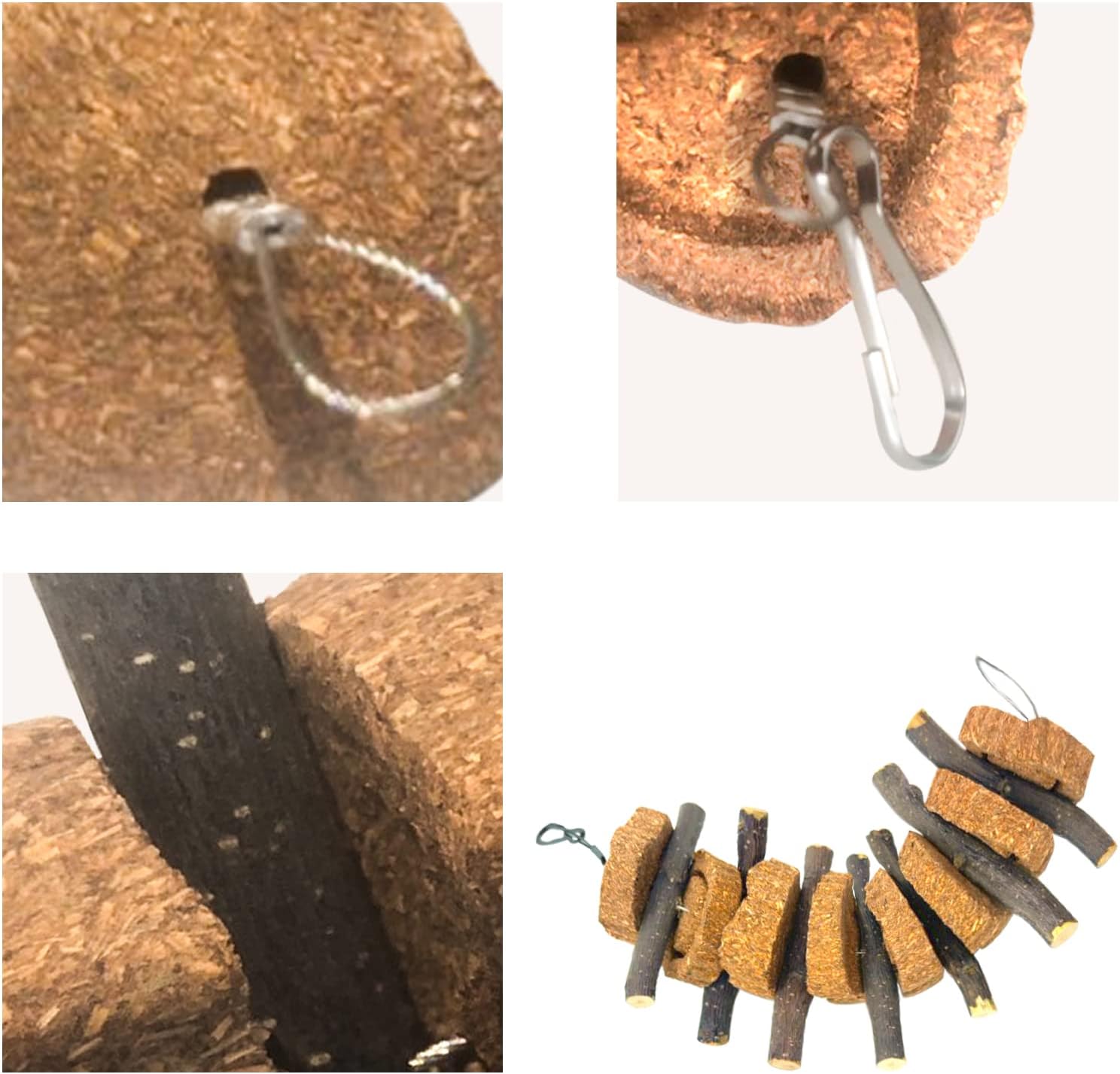 • 100% NATURAL HANDMADE:Rabbit treats and chew toys are made of 100% natural apple wood and alfalfa material,no additives,no added coloring,repeated baking,safe and bite resistant. Rabbit hanging chew toys natural wood may take a while for your pet to adapt and love them. High quality apple wood,carrot and alfalfa keep your small animal chewing safely
