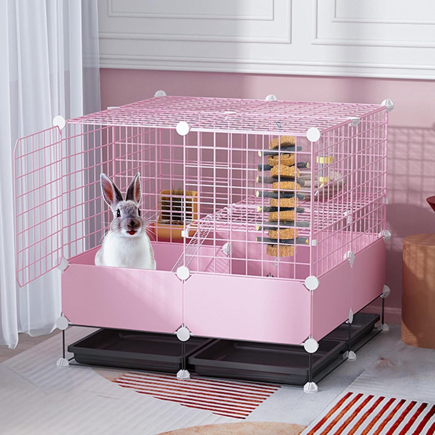 • HANGING RABBIT CHEW TOYS:Bunny chew toys hanging consist of 8 carrot love cakes and 7 apple sticks,Guinea pig hanging chew toys can give your pet the double pleasure of chewing and playing