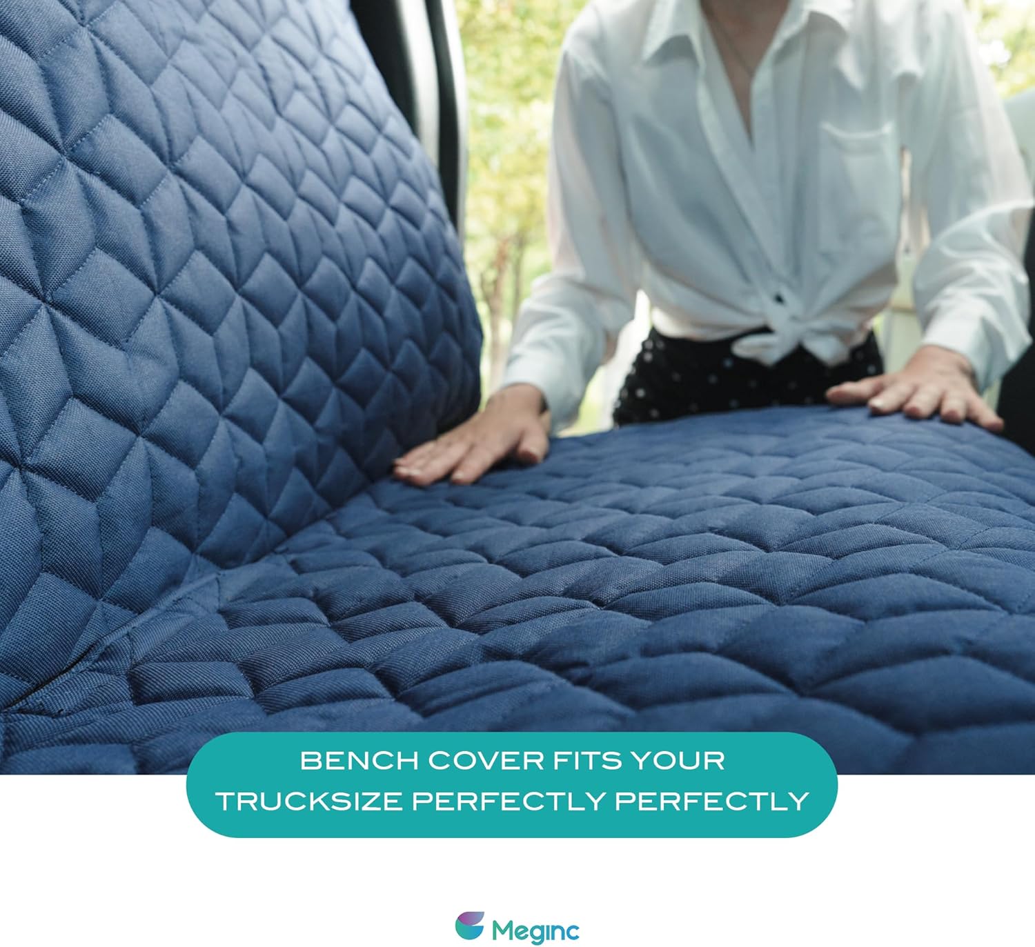 • 🚗【Seat Cover Will Not Slip and Slide】Meginc Bench Seat Covers is a full sized truck seat cover and it is firm and will not slip around when you used the seat anchors.There are fixed elastic straps on both sides of the bottom. The bottom seat anchor is inserted into the seat. It is not easy to move when pets playing, and the cushion will not slide.
