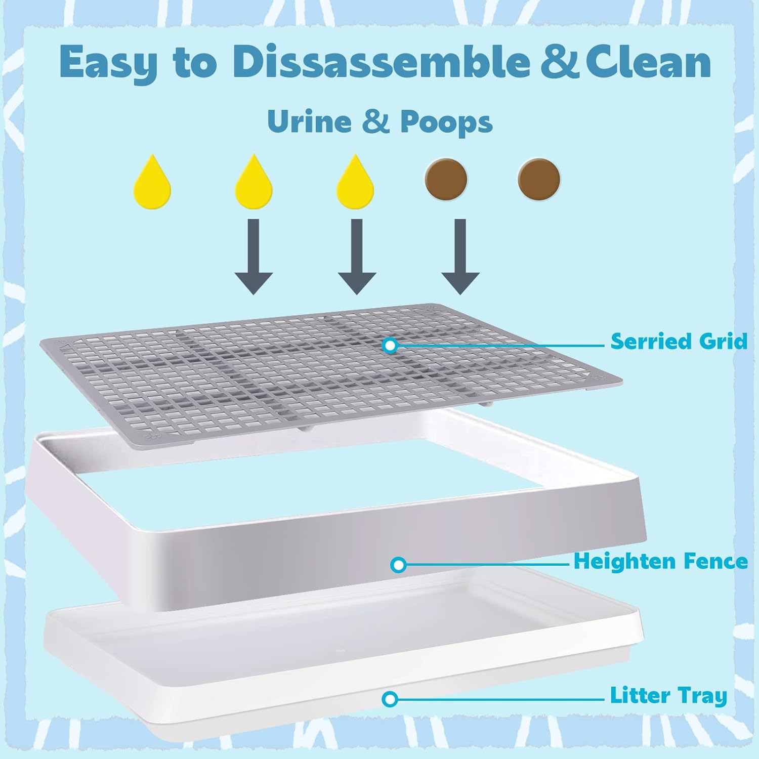 - Easy to Clean: Since this rabbit corner litter box material has a smooth surface, you don't need soap and detergent to clean it; When the bottom tray is full of excrement, you can take it out from the pet training tray and wash it with water, the dirty things is easy to be washed away; So this small pet litter box is very easy to maintain