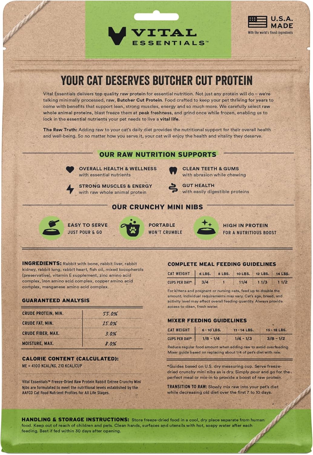 Vital Essentials Freeze-Dried Raw Rabbit Meal or Mixer Cat Food Crunchy Nibs, 12 oz