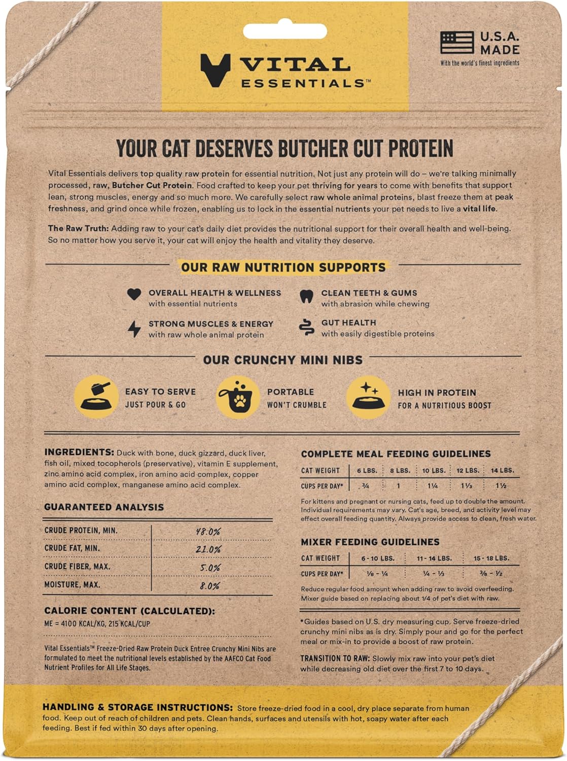 Vital Essentials Freeze-Dried Raw Duck Meal or Mixer Cat Food Crunchy Nibs, 8 oz