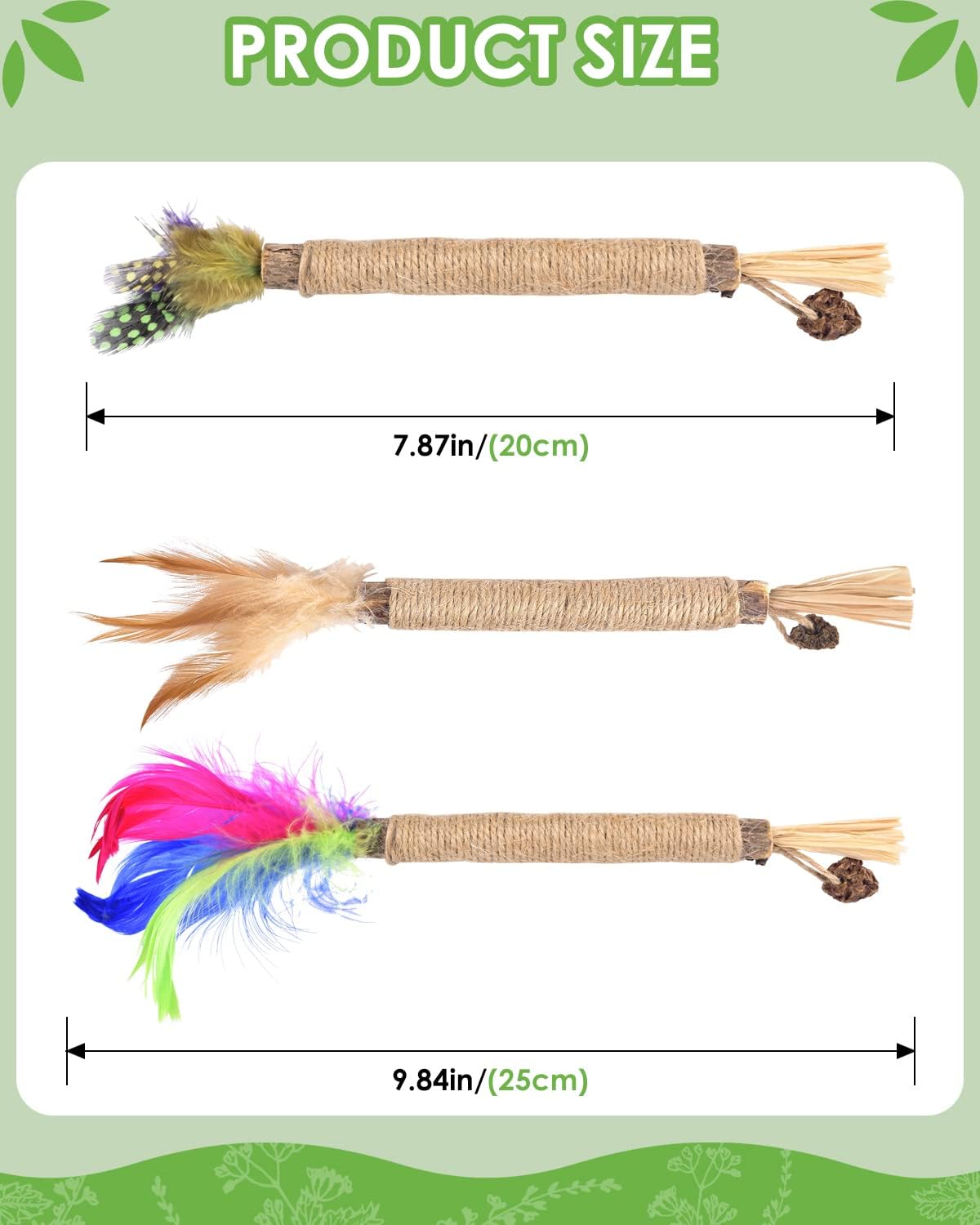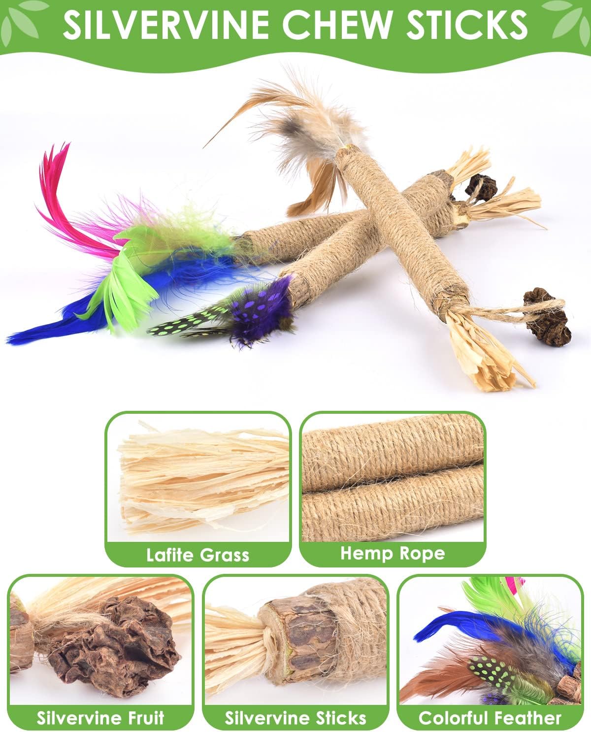• 【Natural Silvervine Sticks】Our silvervine sticks are made from natural silvervine, raffia, sisal rope and gall fruit (fruit of silvervine), there are absolutely safe for cats to chew and bite.