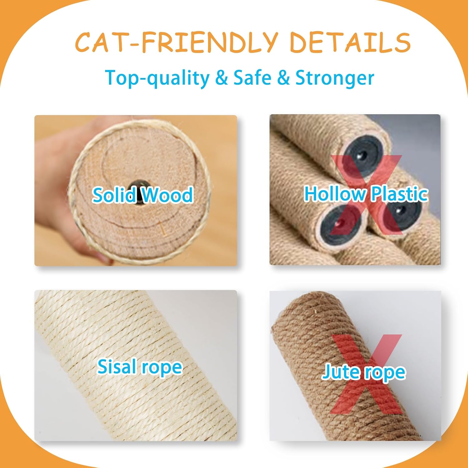 • Sturdy & Stylish Pine Wood Construction: Made from high-quality pine wood, this cat climbing furniture is both durable and stylish. The natural wood finish blends well with any home decor, providing a sleek and modern addition to your living space while being sturdy enough to support your cats’ weight