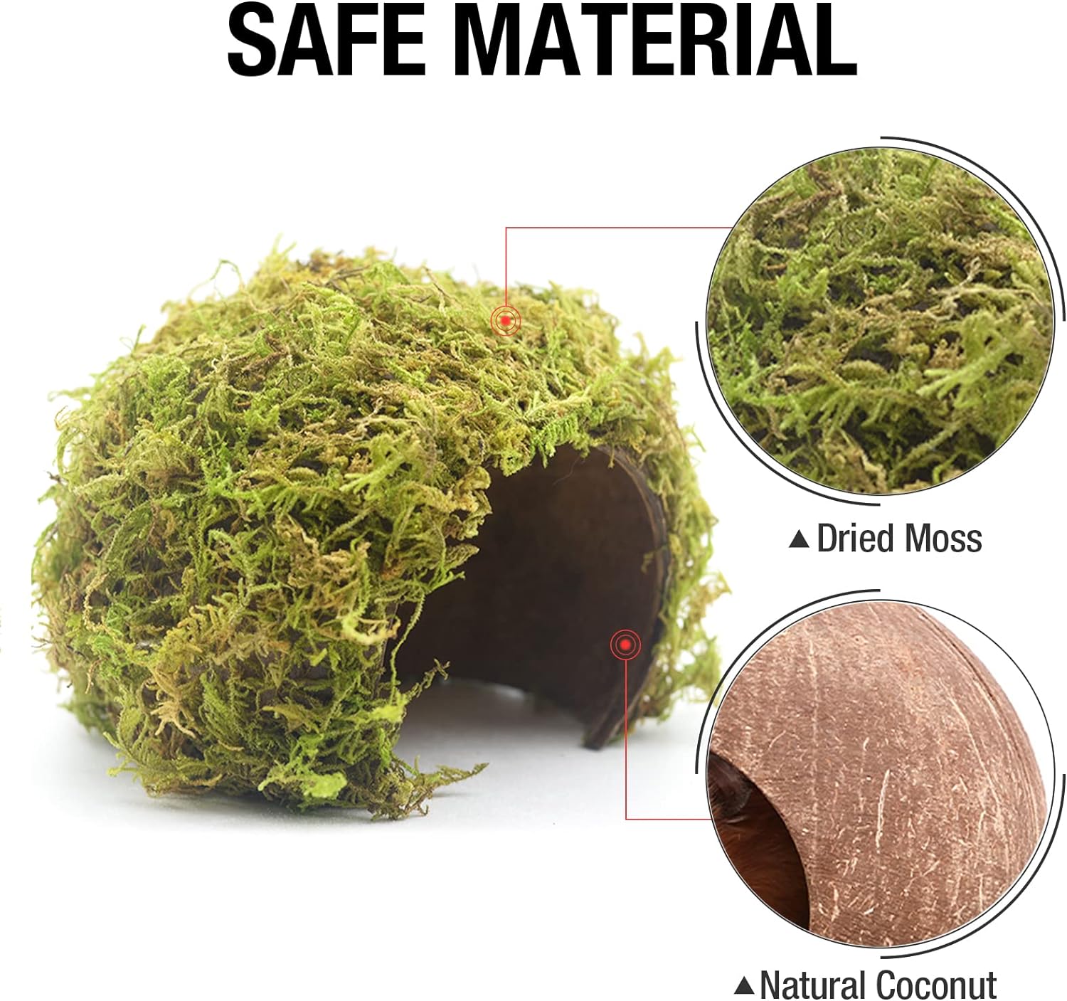 • ✨ [Safe & Edible Materials]: Crafted from hand-selected, high-quality coconut shells and natural moss harvested from mountains, this hideout uses a traditional, edible adhesive for secure bonding—designed to be safe for small pets like hamsters to chew and explore. Ideal for creating a natural, non-toxic hiding place.