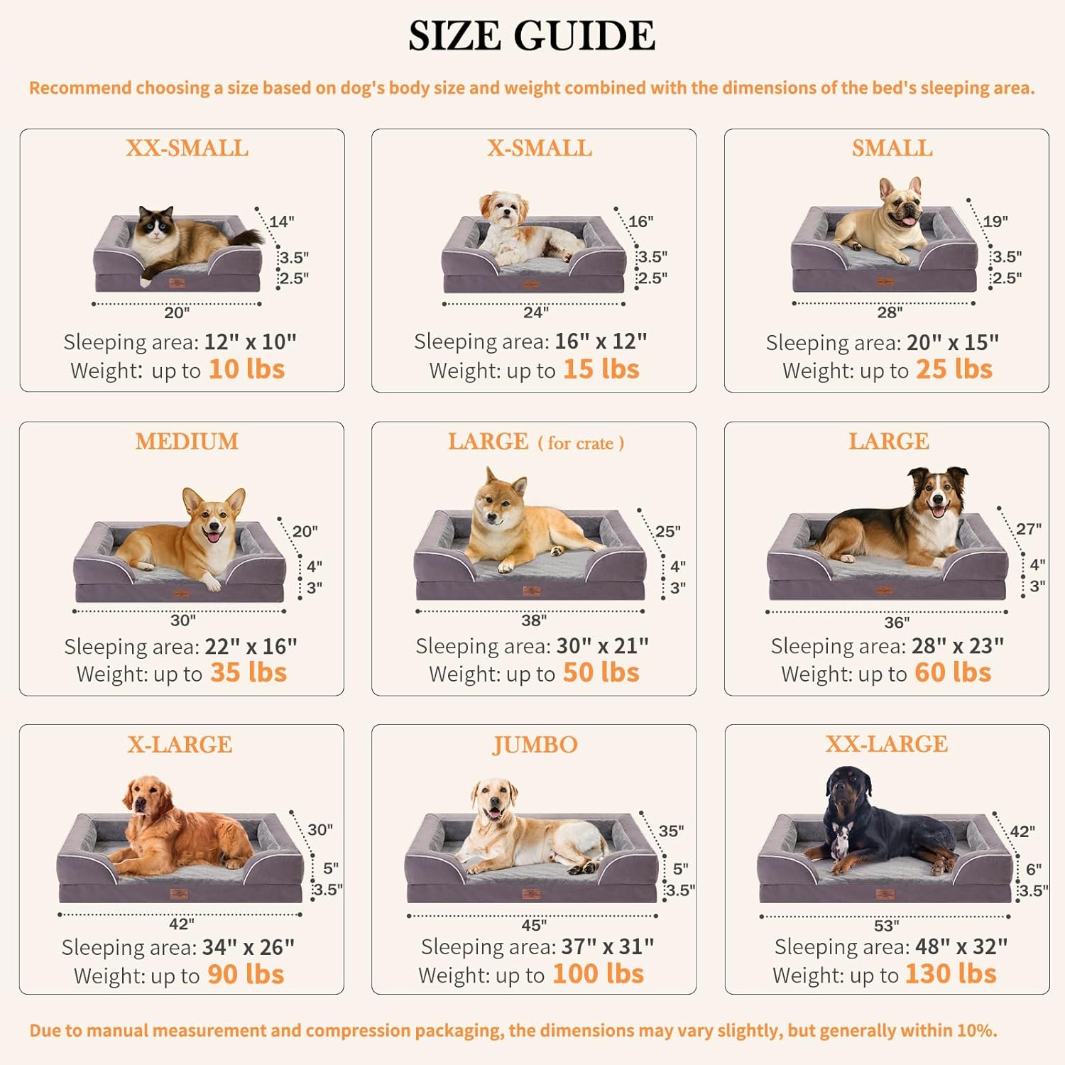 Comfort Expression XXL Waterproof Orthopedic Dog Bed for Extra Large Dogs, Orthopedic Foam Dog Beds, Washable Dogs Sofa Bed with Removable Cover & Non-Slip Bottom(XX-Large,Purple)