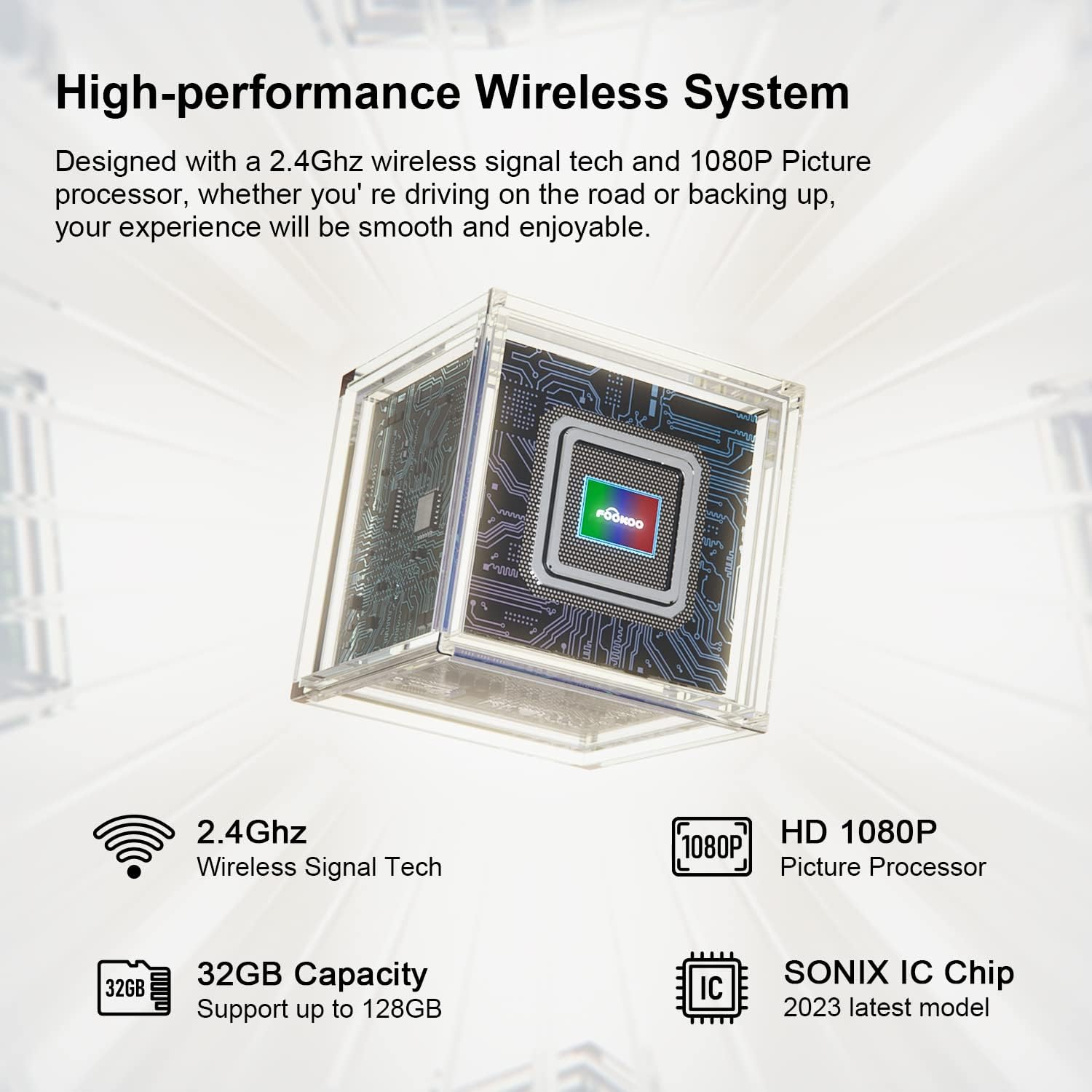 - ★ Advanced Capacitive Touch Buttons & Digital Signal: Touch buttons are more sensitive and convenient than traditional buttons. Gently touch-operated, its quick response makes it safer for you to use while driving. The wireless digital signal transmission reaches up to 108 feet in the open area, giving you a steady and real-time picture that stays steady and lag-free even when the car is traveling at speeds up to 95 MPH.