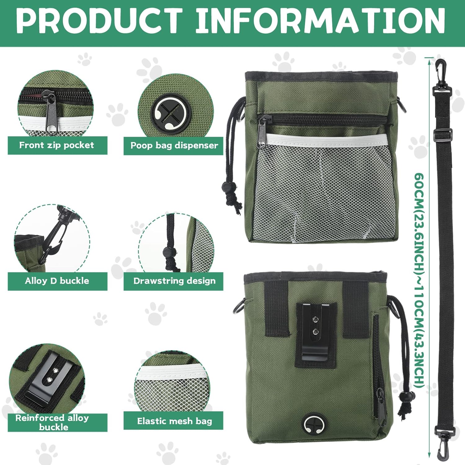 • Multiple Ways of Wearing: the dog training treat pouch is designed with belt perforation, alloy hook, garbage bag hole and adjustable shoulder strap; You can slant it across your shoulder, fasten it around your waist with a belt (not included), choose the way you like to wear it
