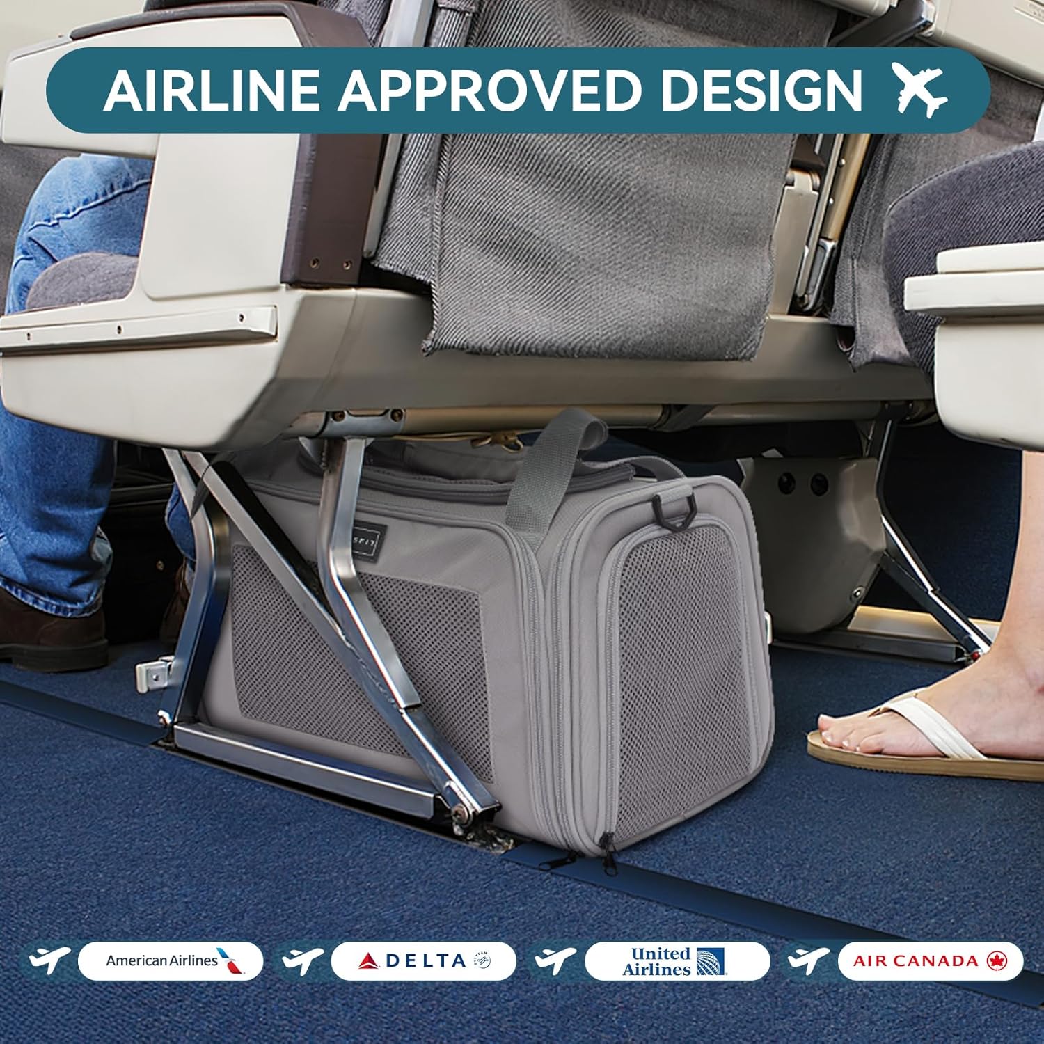 PETSFIT Cat Carrier Airline Approved, Soft Carrier for Small and Medium Cats Under 12 Lbs, Soft Cat Travel Bag, Kitten Carrier with Extendable Mat, Grey