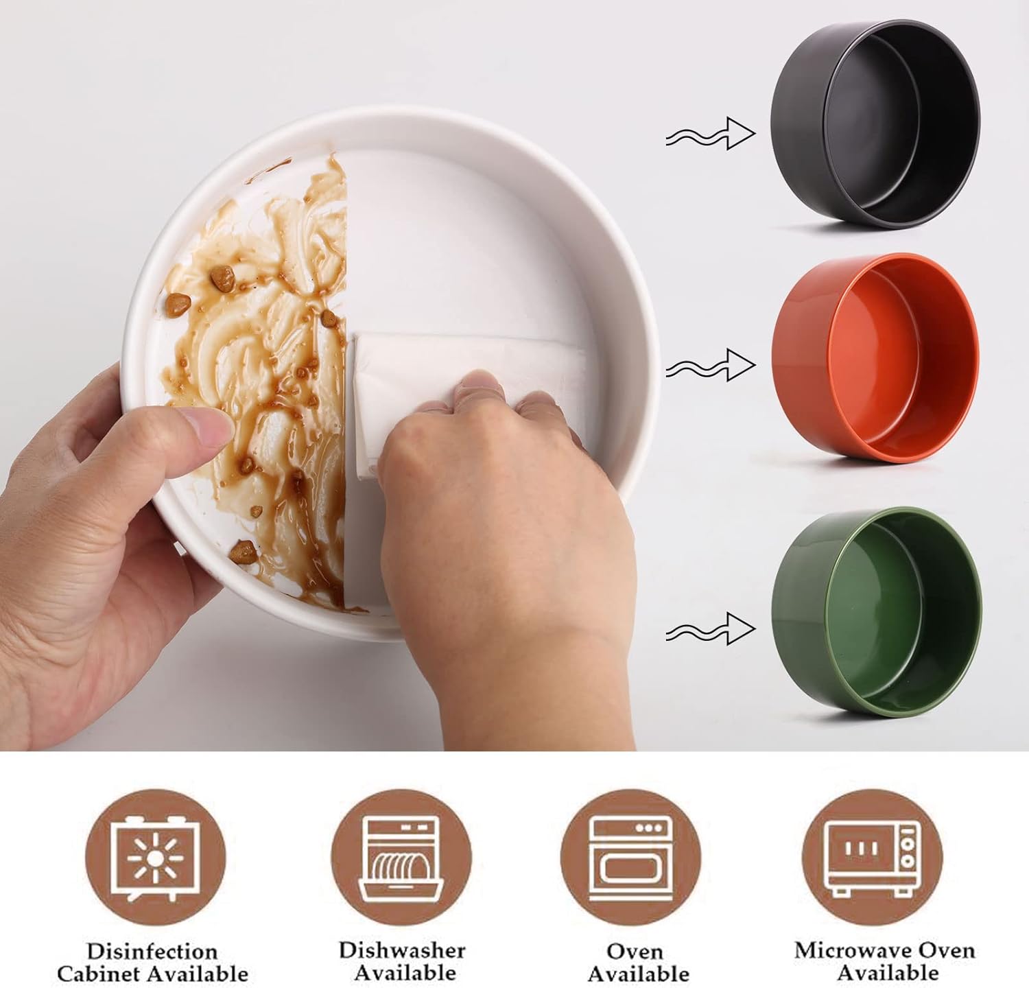 • Easy to Clean and Microwave Safe Ceramic Material - Cute ceramic dogs cats bowl with WOOD STAND design matches the home decorations. Ceramic bowl is made of Porcelain, this size cat dog food water bowls are free of lead and cadmium. High temperature ceramic, non-toxic harmless, no smell,durable.Clean sanitation, be helpful for pet health. conveniently dishwasher Microwave safe so this ceramic food bowl can be easily cleaned. No Fuss.