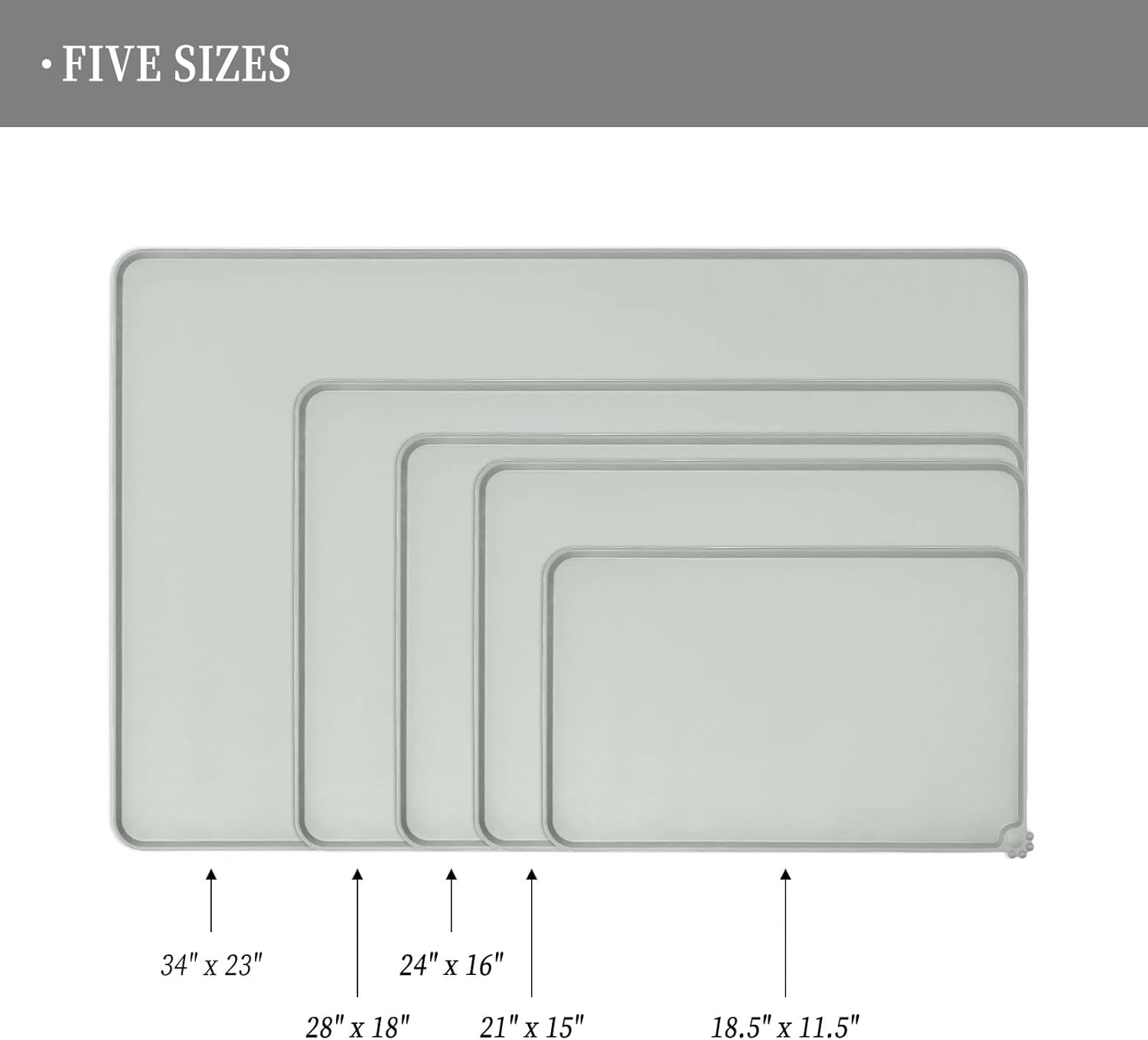 • Various sizes available: our pet mats come in 5 different sizes - 18.5" x 11.5", 22" x 14", 24" x 16", 28" x 18", and 32" x 24". Suitable for all kinds of pets, from puppies to large pets, choose the perfect size for your furry friends and avoid messy spills at mealtime