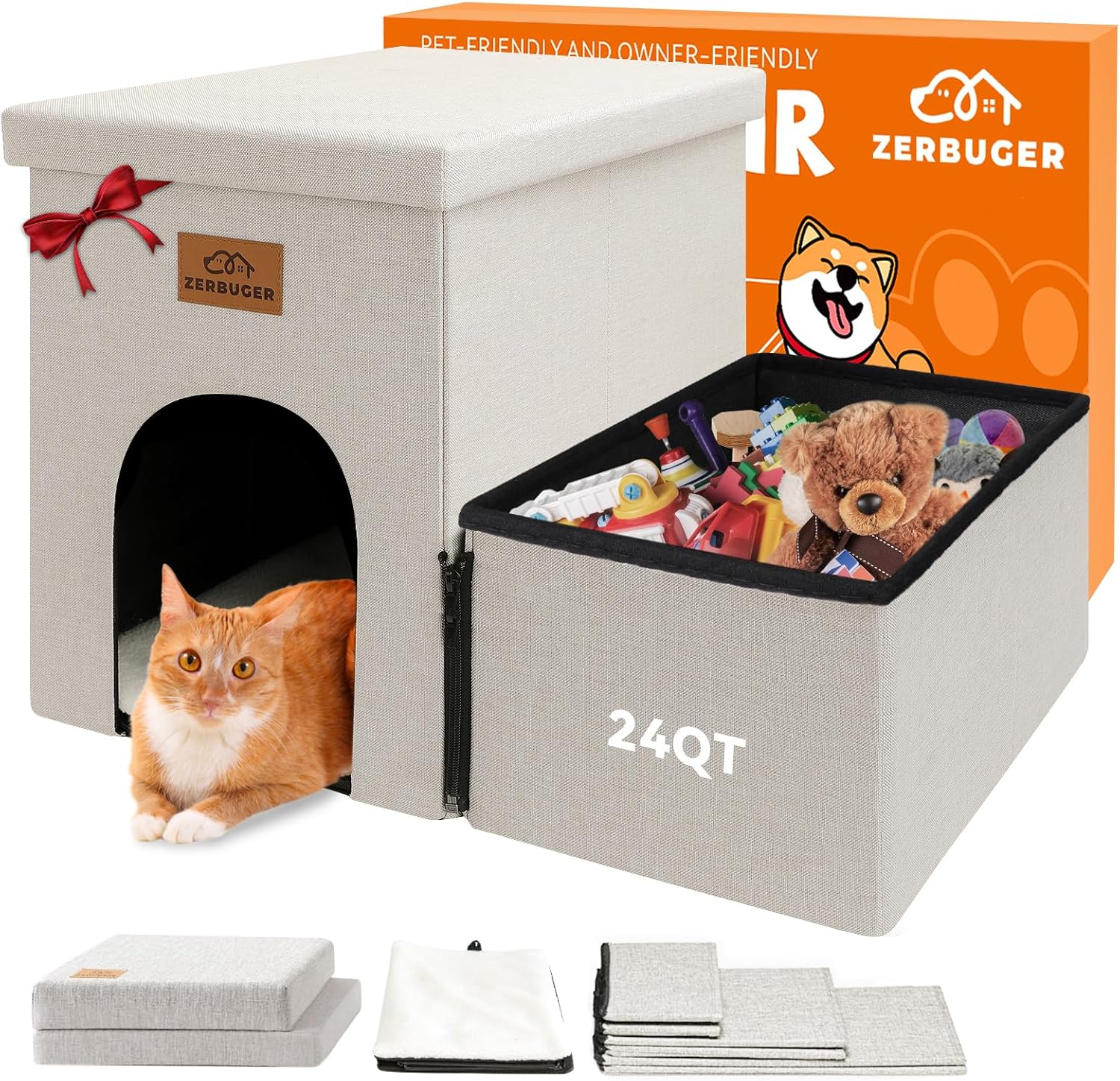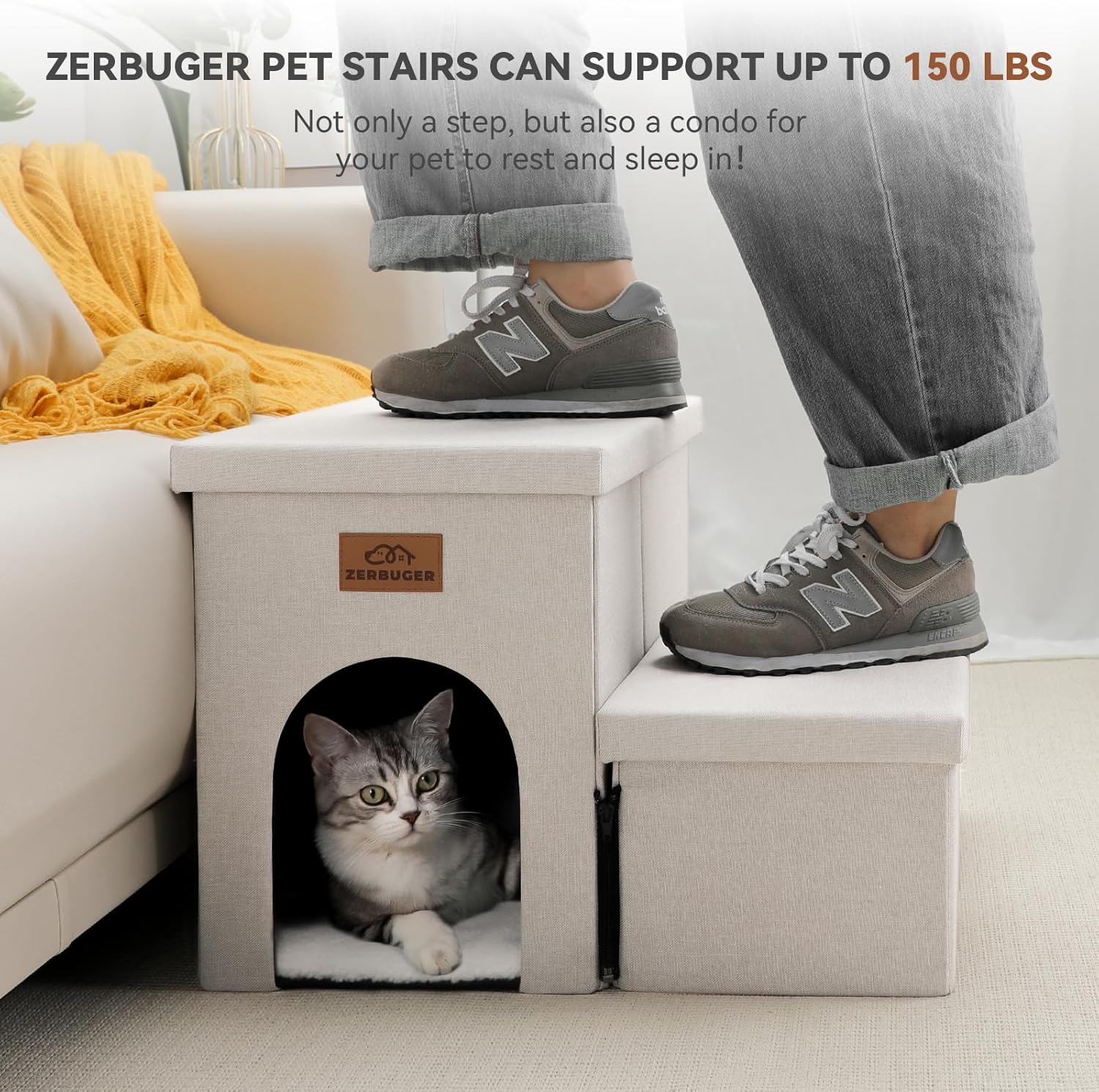 • 3-IN-1 DOG STAIRS AND CONDO: Zerbuger pet stairs not only provide a stable and cozy place for your pet to rest, but also serve as a convenient 24QT large storage area for your pet's clothes, toys, or any other supplies. Our pet steps are covered with removable lids, Every steps are designed as storage boxes.