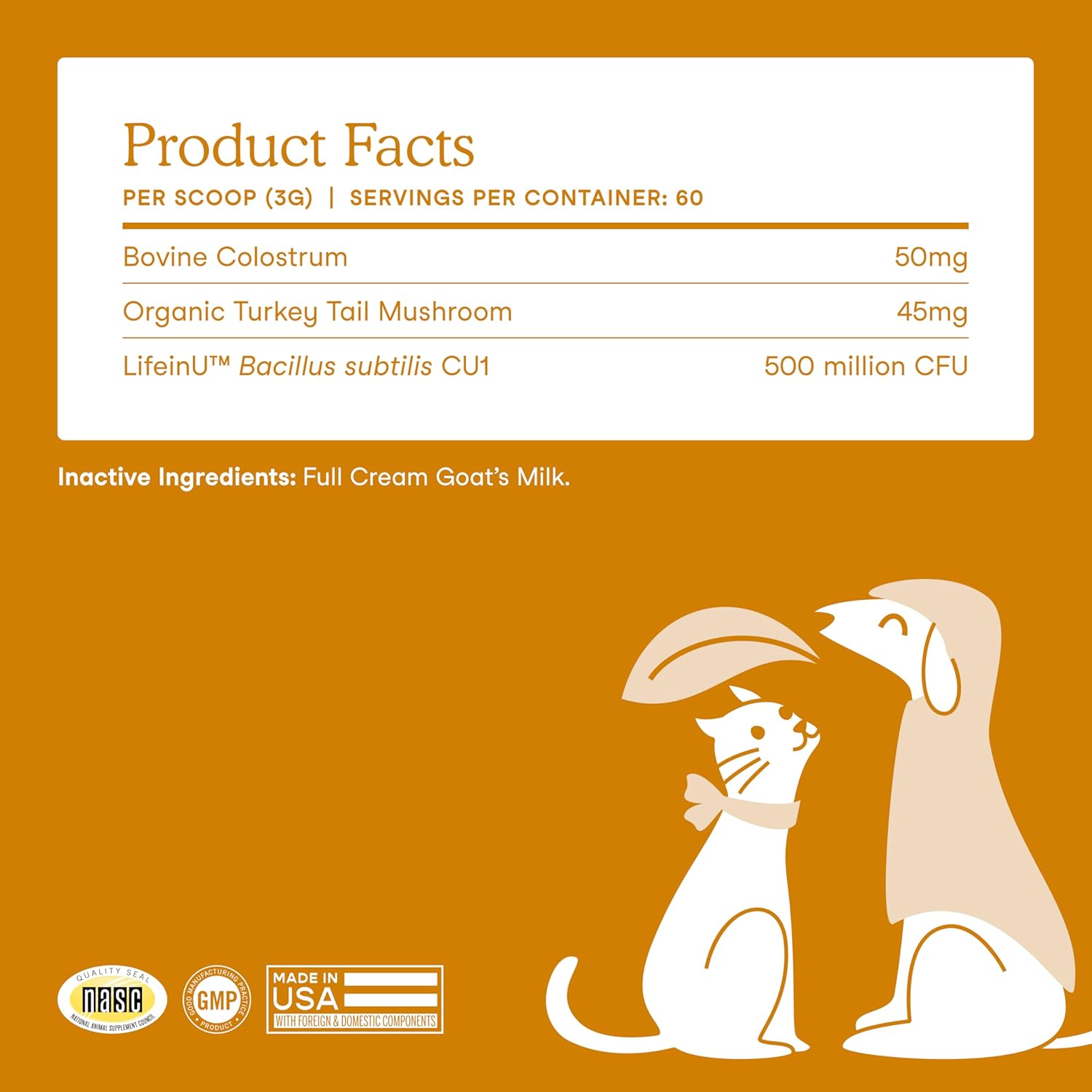• No fillers: Formulated with Bacillus Subtilis cat probiotic and dog probiotic, as well as colostrum and turkey tail mushroom for immune system regulation; made with full cream goat milk for easy digestion