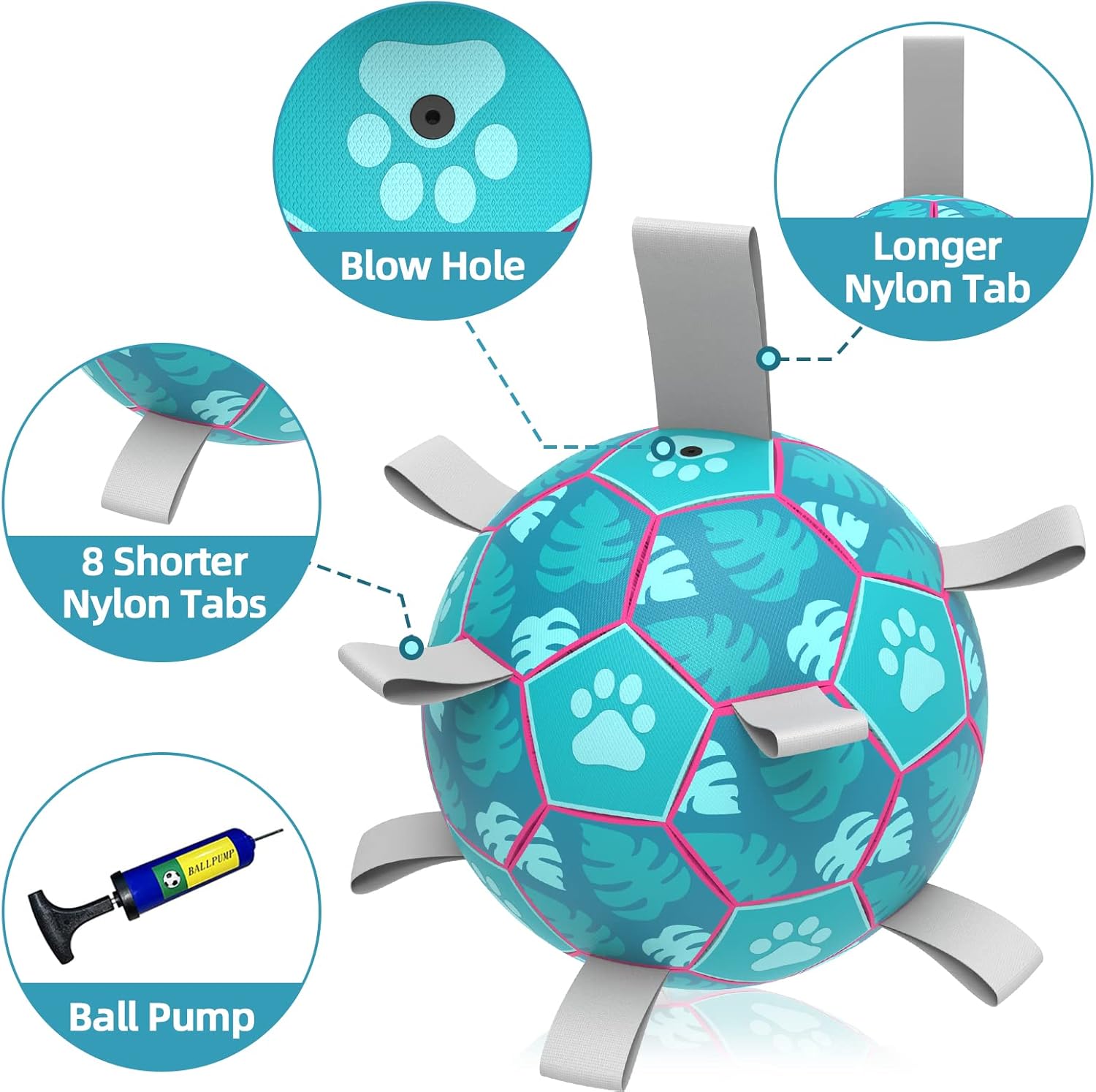 • QDAN Dog Soccer Ball Best Git For Your Dog - Send your dog a bithday gift. House and Outdoor Dog Toyscan be played in the llving room,pool.lake and beach,because it ls also Water Toys Bal,no water absorption.noseepage,no deformation,lightweight,easy to float in water. Dog Soccer Ball with Grab straps are great for dog catching