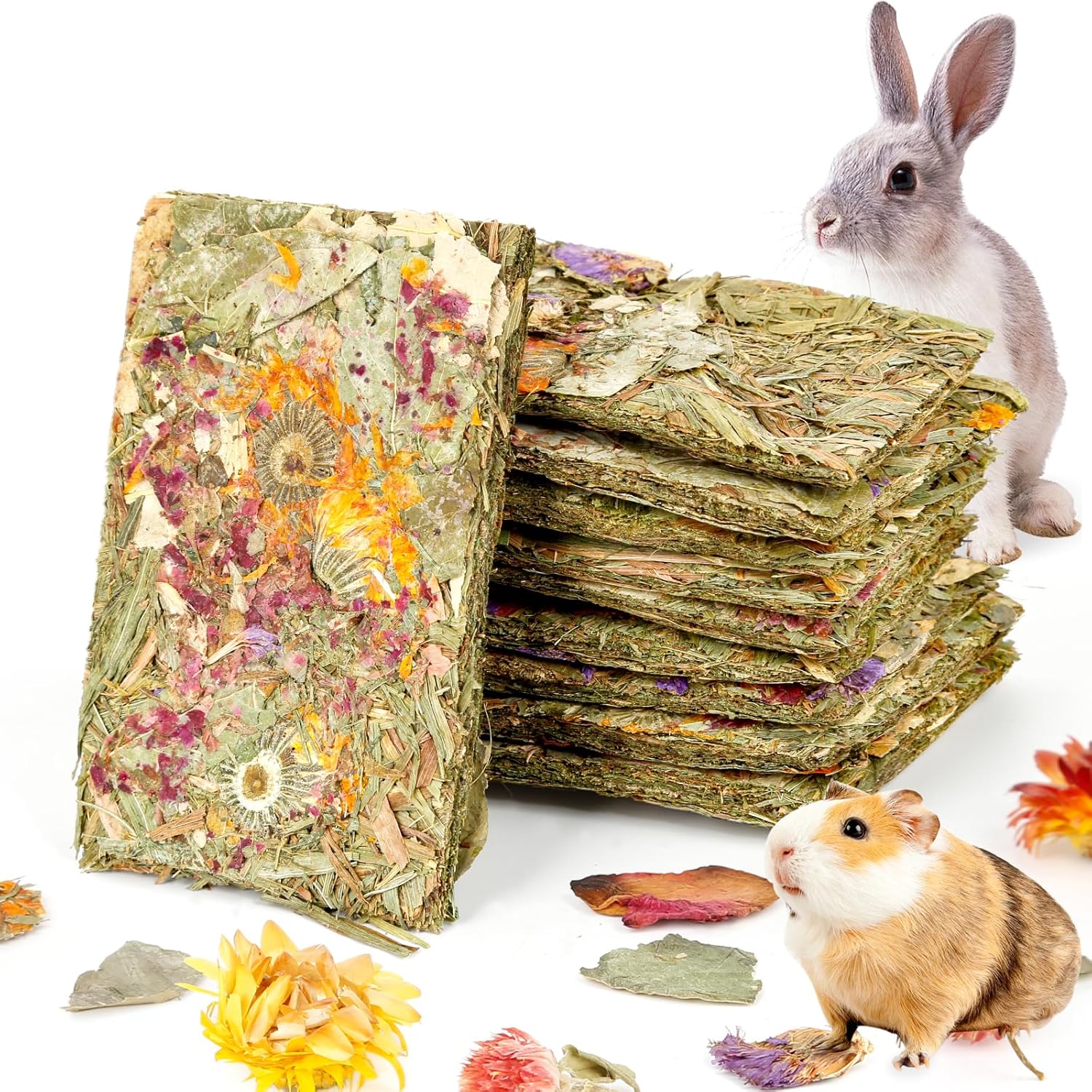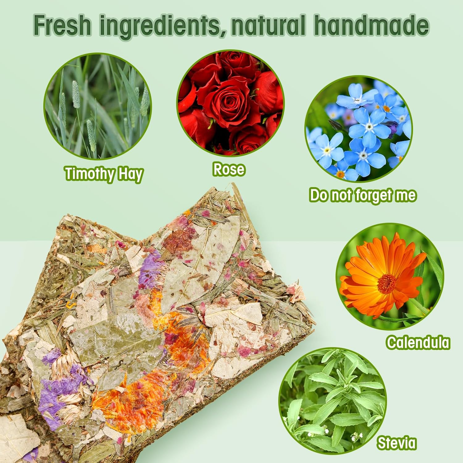 • 【Pure Natural Ingredients for Optimal Health】Rabbit treats for bunnies are made with only the best natural materials,including timothy hay, compressed dried flowers, and herbs.The balanced nutrition ensures your little guy enjoys the more natural foods than the processed ones.