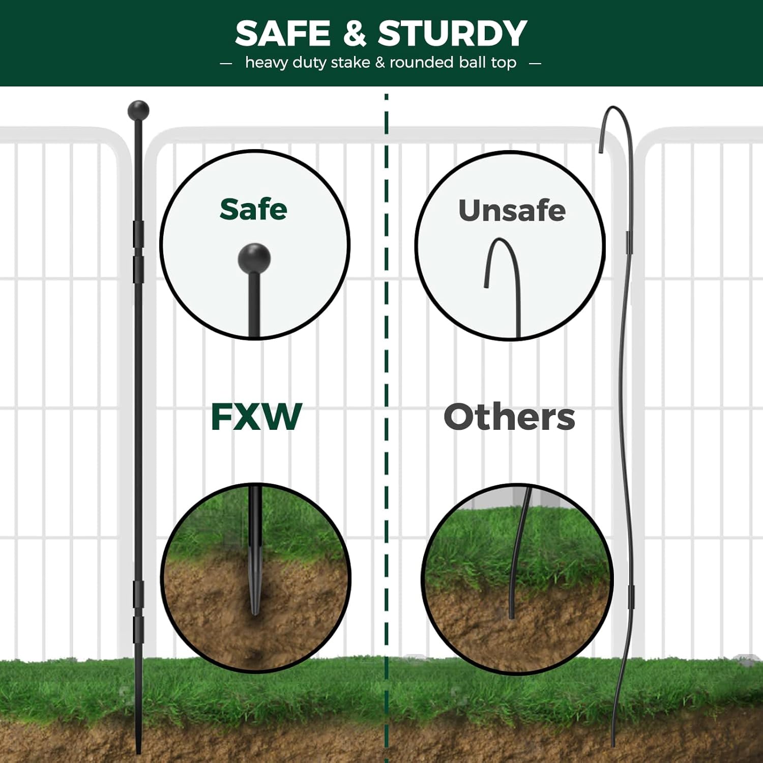 • Unlock your freedom, savor the moment: The stakes are designed with rounded ball tops to protect the dog's claws from injury. The rods are easily inserted into the ground for greater stability and rigidity, which won't collapse when the dog leans against them. Also, the automatic gravity-actioned locking mechanism will ensure you can open and close the door smoothly and reduces the chance of dogs unlocking by themselves. All of this is designed for absolute safety, so you can really relax.
