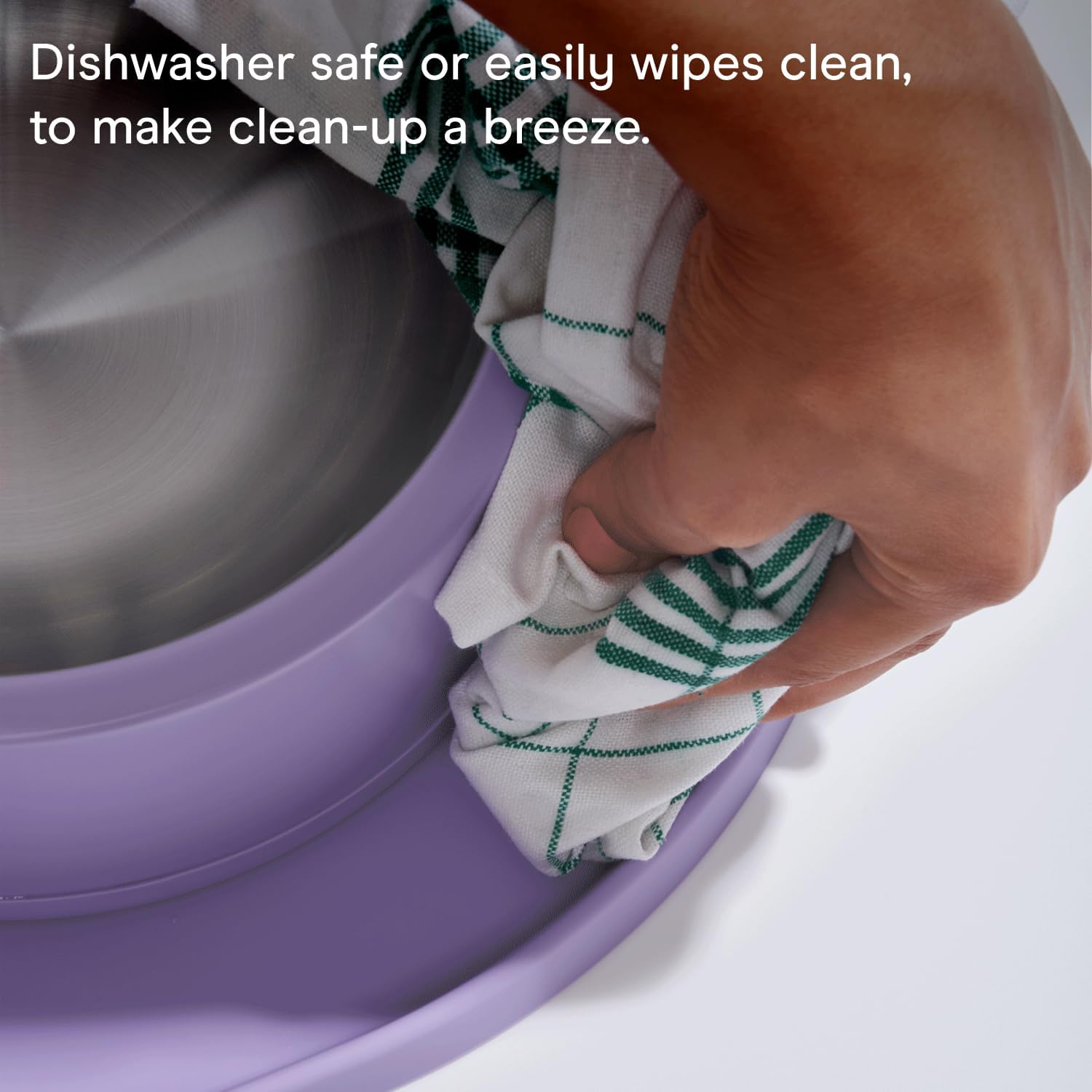 • MESS-FREE MEALTIME: Raised edges on the Placemat contain spills and protect floors, and the Bowls' silicone base ring prevents slipping and sliding.