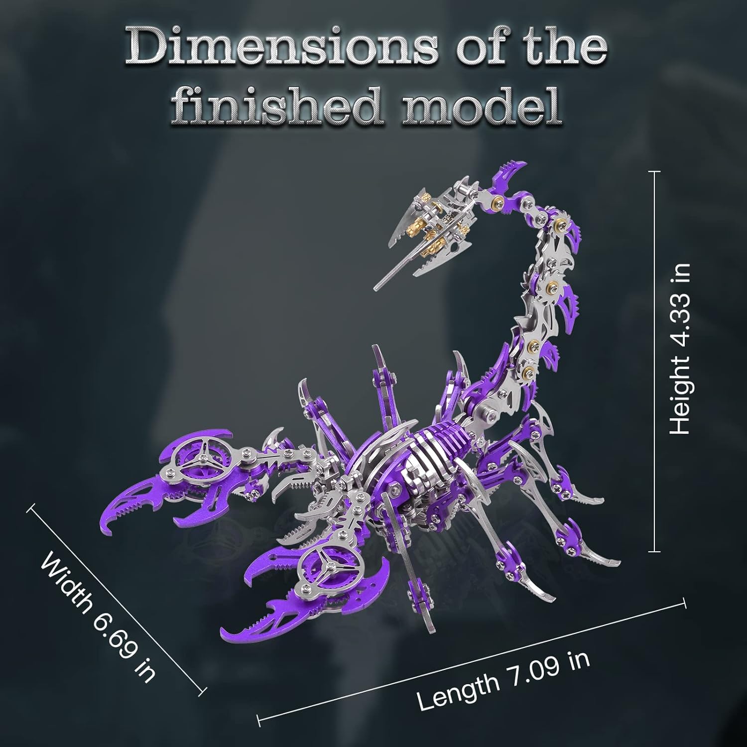 • 🦂Complete Kit: Our kit includes everything you need to build your own mechanical masterpiece, including 454 stainless steel parts, tools, and color drawing instructions. Finished product size: 16cm x 14cm x14cm.