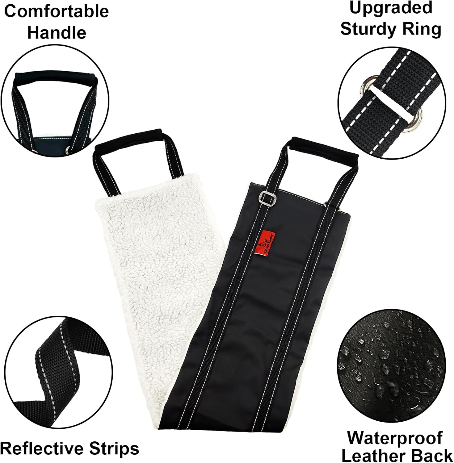 • Easy to use and store: place the harness under the dog's belly with the fleece lining touching their belly, and adjust the webbing as needed. It can be easily folded for portability when not in use.