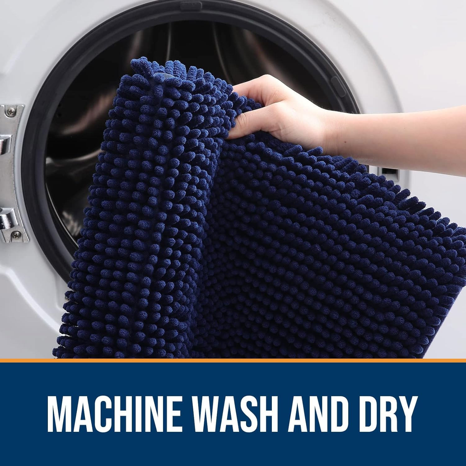 OLANLY Dog Door Mat for Muddy Paws 48x30, Absorbs Moisture and Dirt, Absorbent Non-Slip Washable Doormat, Quick Dry Chenille Mud Mat for Dogs, Entry Indoor Entryway Carpet for Inside Floor, Navy Blue