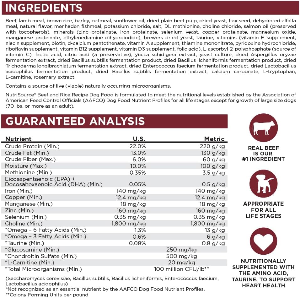 • As a member of our grain inclusive series, NutriSource Beef and Rice Dry Dog Food is formulated to meet AAFCO guidelines for all lifestages