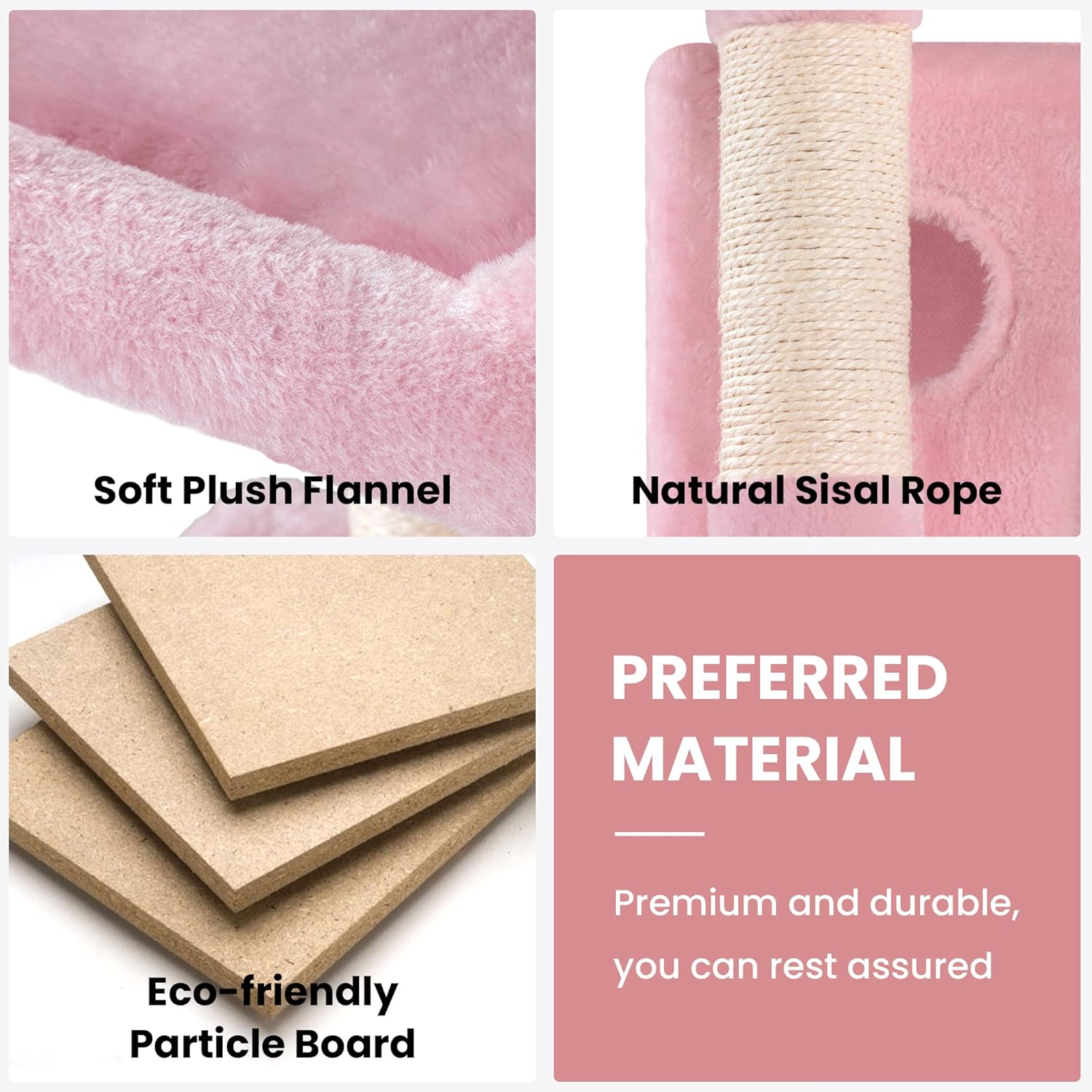 • Solid and Stable: The cat tree is made of high-quality particle board with a plush covering, and the strengthened base is strong enough to support 33 lb