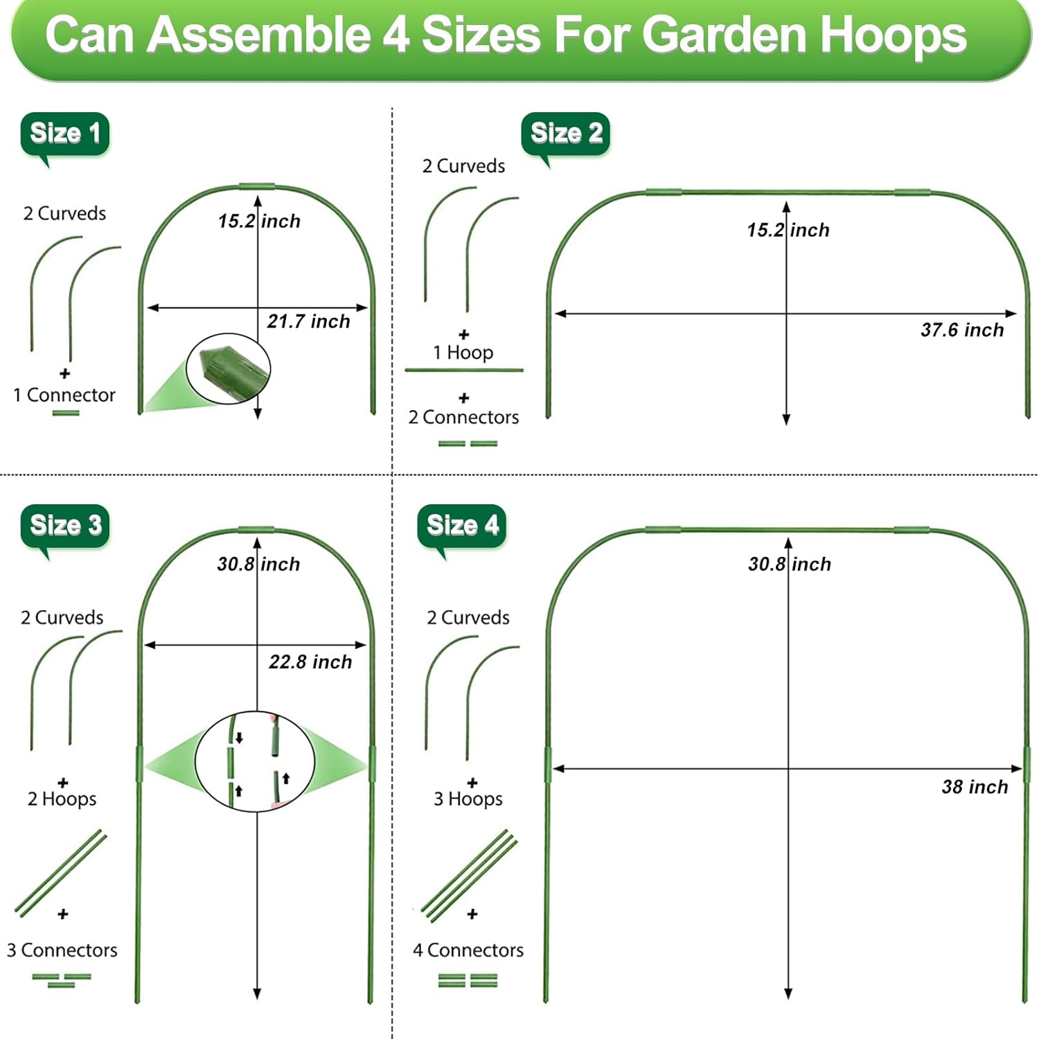• [ Free DIY ] Garden netting and hoops can adjust the right size according to the height and width of your plants. Garden netting can be cut to the right size with scissors, and hoops can be combined with different components to assemble into multiple sizes. Everything follows your plants.