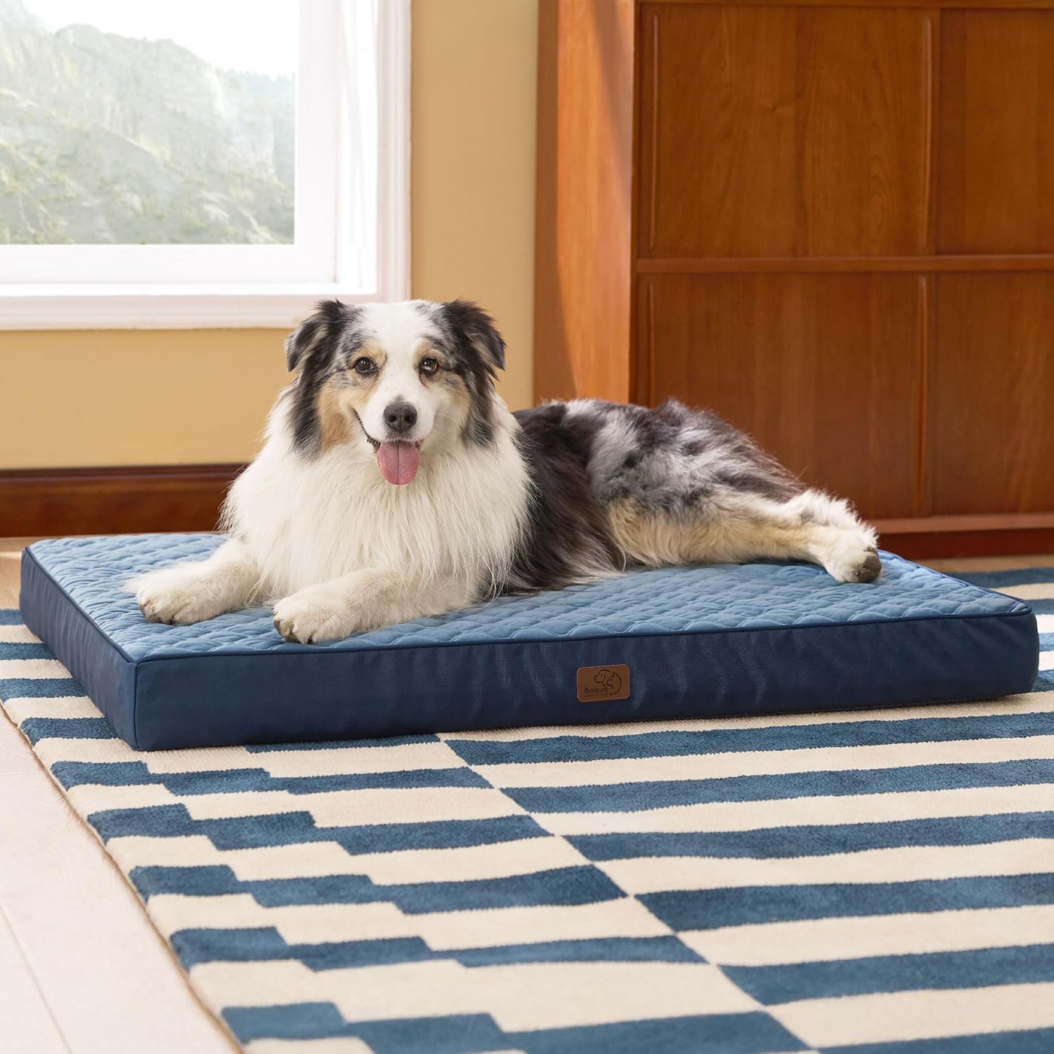 Bedsure Orthopedic Dog Bed for Extra Large Dogs and Crate - Thick Memory Foam Pet Mattress with Removable Washable Cover and Egg Crate Foam, Suitable for Pet Up to 100 lbs, XL 41x29x4 Inches, Navy