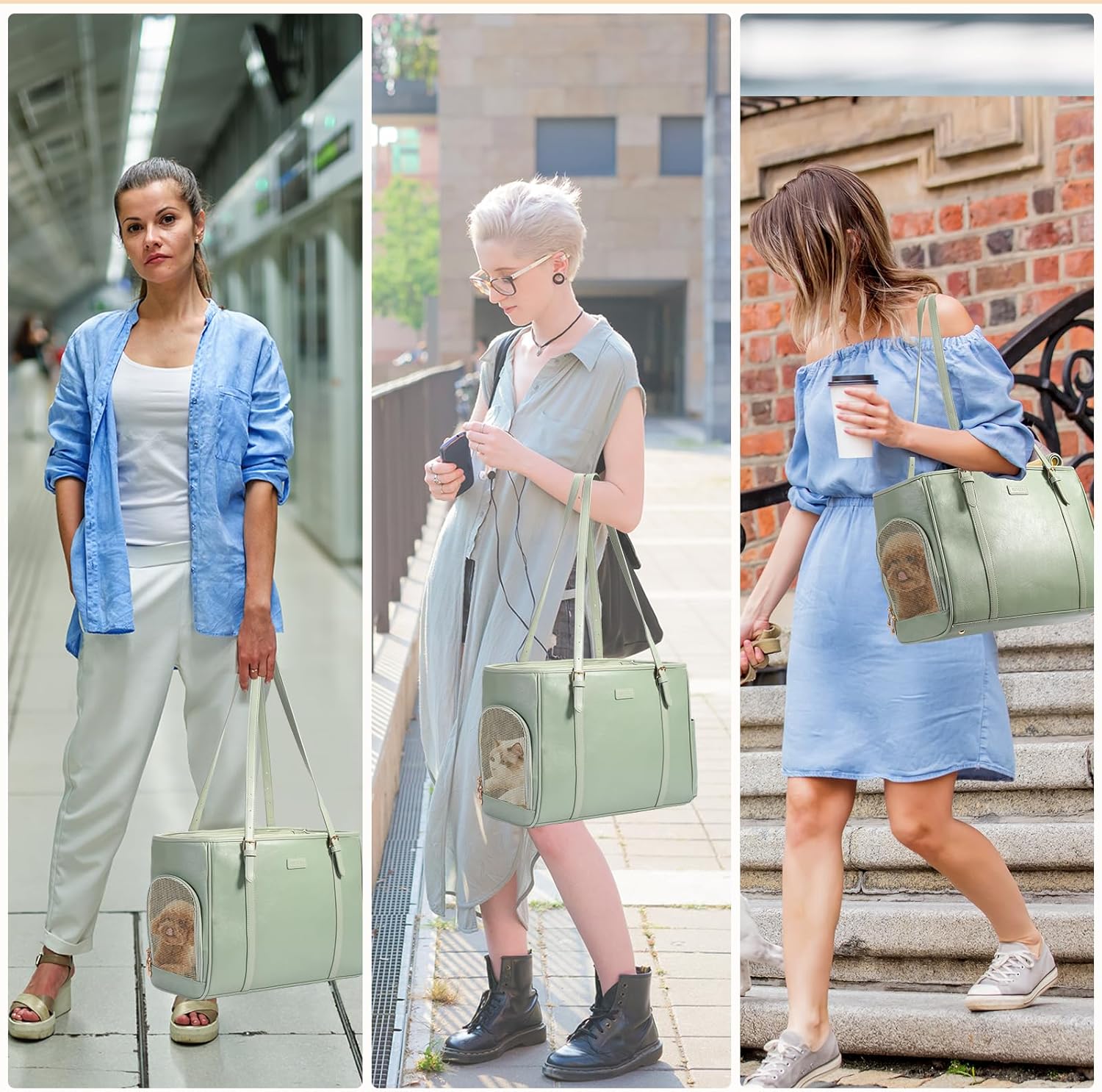 • 【Convenient for Travel】Thanks to this stylish pet carrier bag, whether it's shopping, traveling by car, traveling by plane or going to the pet hospital, it provides a comfortable and spacious travel experience for your pet.