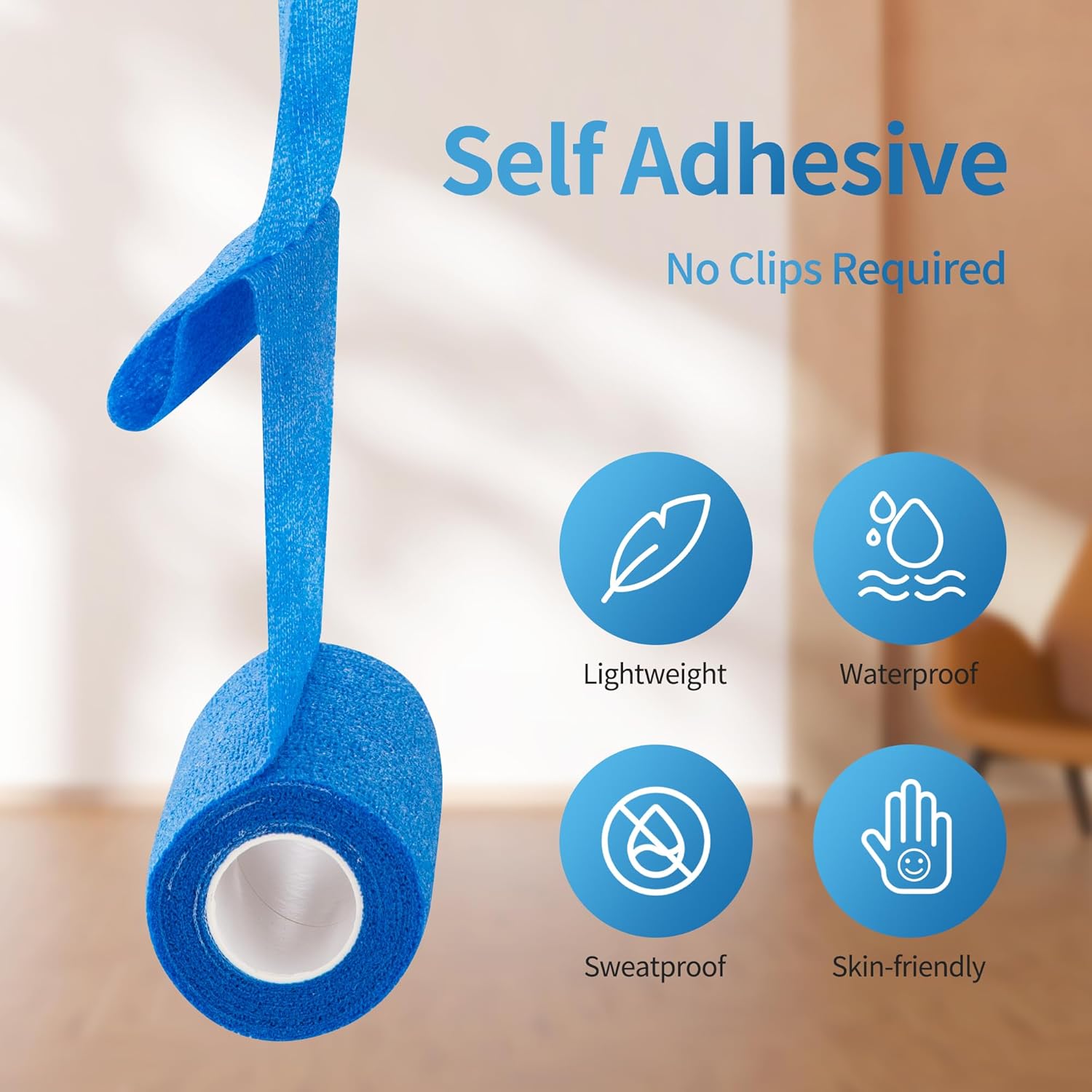 • Self Adhesive Bandage Wrap: Strong self-adhesive, medical self adherent wrap offers excellent support and adhere to themselves, but not stick to your skin or hair. No need of clips or fasteners. Thanks to water resistantance, not loosen or unwrap by sweat.