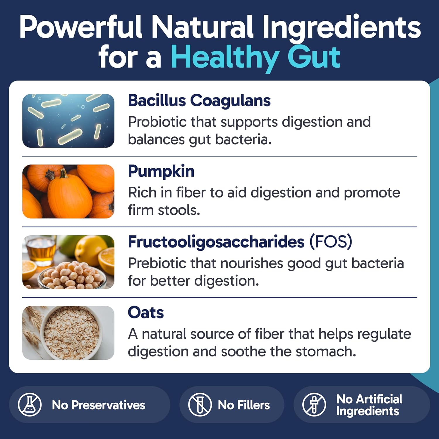 • Powered By Nature’s Best Ingredients: With pumpkin, oats, and FOS, these chews provide natural dog digestive support using fiber-rich, prebiotic, and probiotic ingredients for well-rounded gut health.