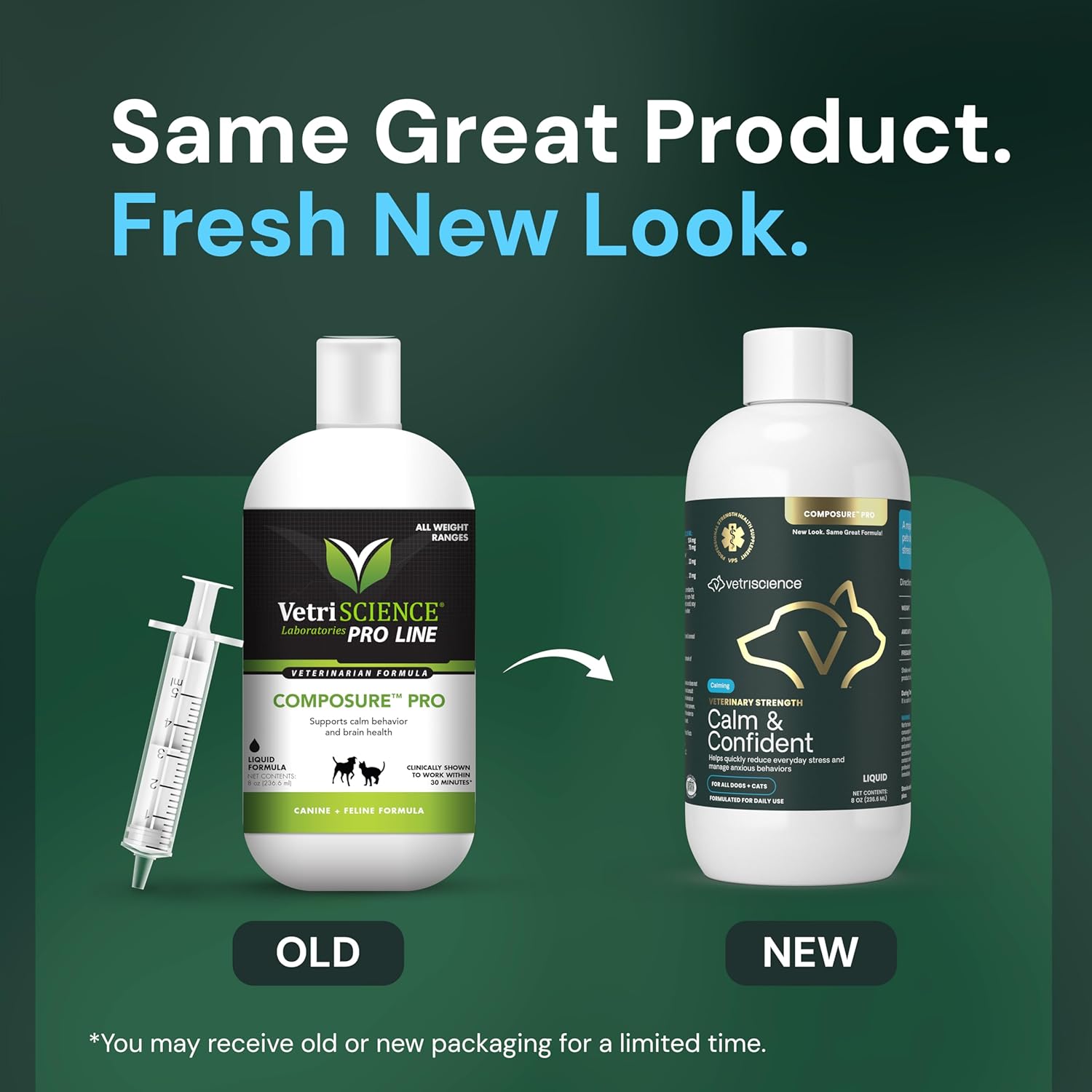 VetriScience Veterinary Strength Calm & Confident Liquid - Liquid Calming Supplement for Dogs & Cats - Pet Relaxation Formula - Clinical Strength - Easy to Administer - Unflavored - 8 oz