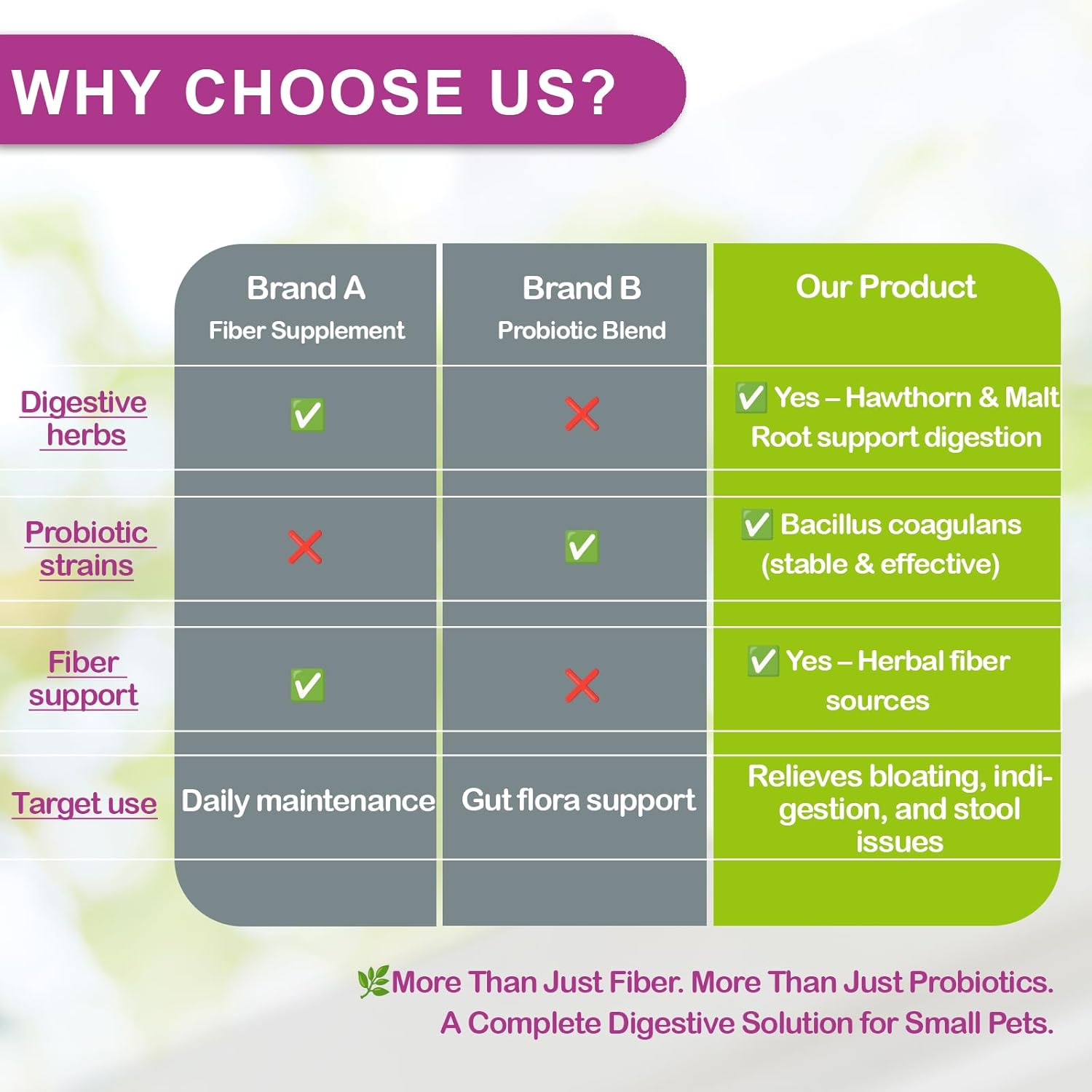 • ✅ 【EASY TO ADMINISTER – 36 CAPSULES FOR CONVENIENCE】 Each box contains 36 easy-to-administer capsules. Whether mixed with food or given directly, it’s a simple and effective way to improve digestive health, support vitality, and ensure your small pets stay happy and active.